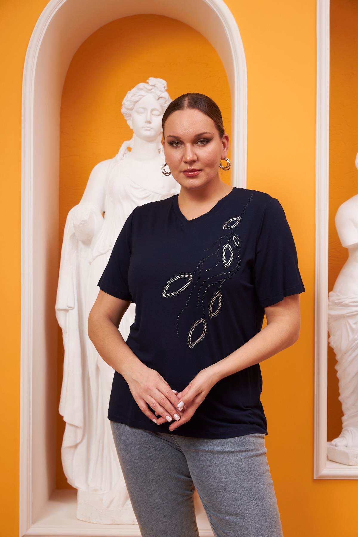 Çiçek Desenli Taş Baskılı Büyük Beden Lacivert Tişört (O6287-LACİVERT)