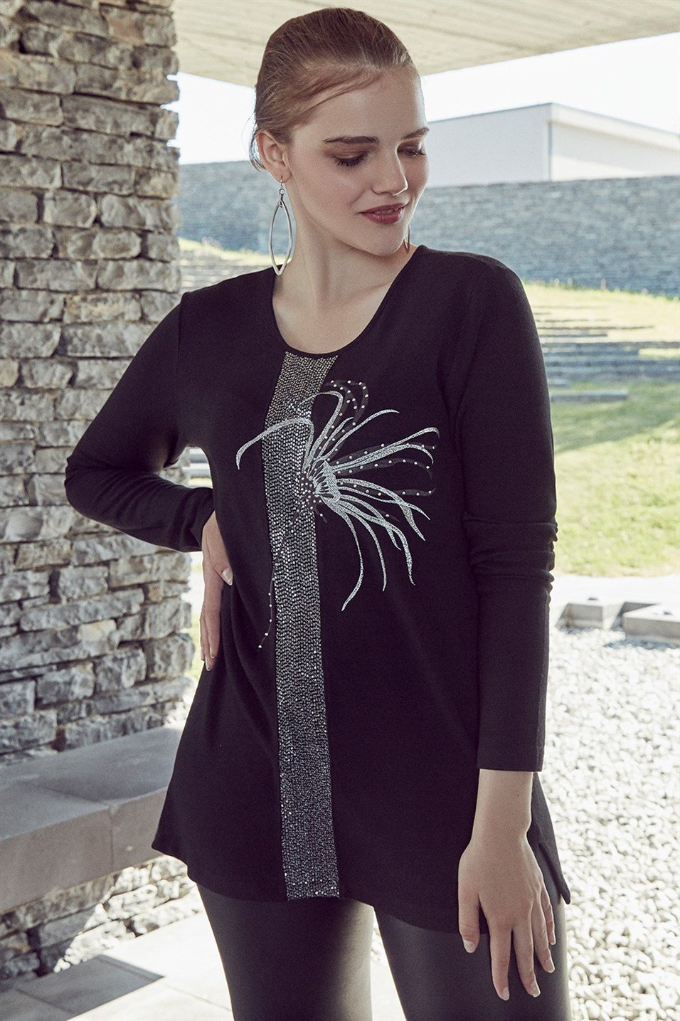 RMG Çiçek Desenli Taş İşlemeli Büyük Beden Bluz (6800-SİYAH)