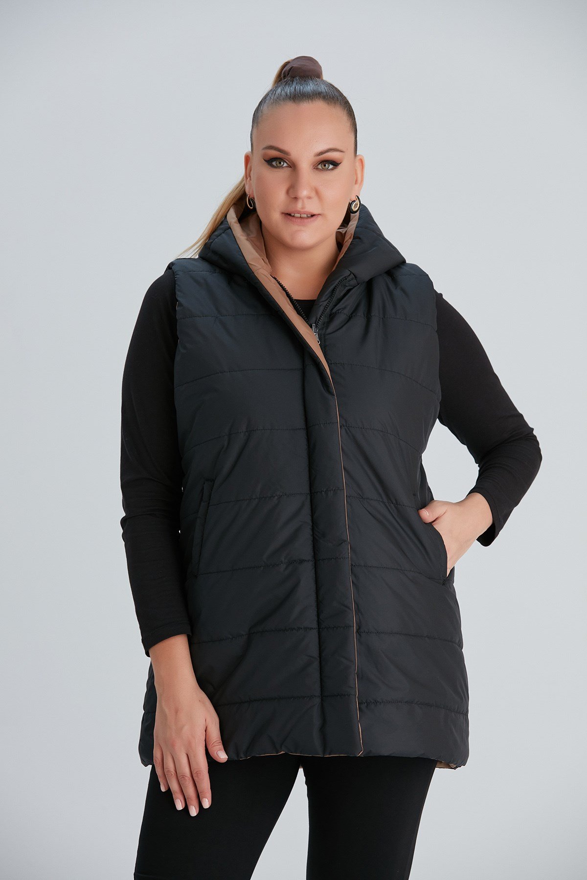 Rmg Çift Taraflı Büyük Beden Camel Kapitone Yelek