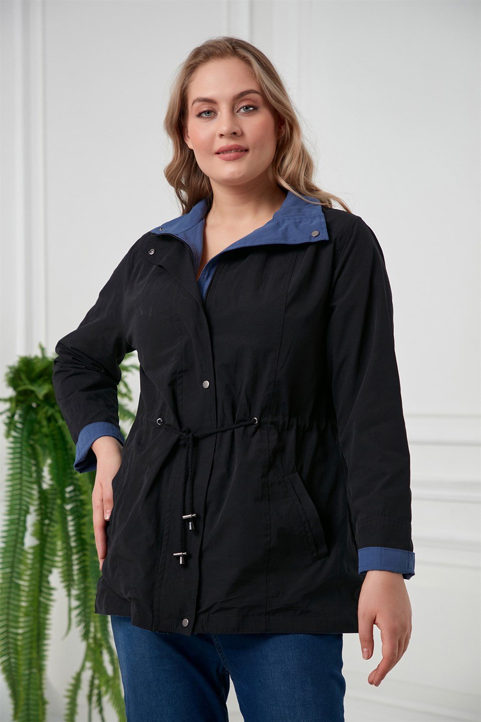 RMG Çift Taraflı Büyük Beden Trençkot Siyah (9729-SİYAH)