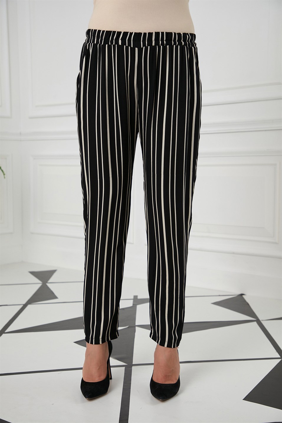İlkbahar ve yaz aylarında giymek için ideal bir pantolondur. Çizgi detaylarının olması; pantolona harika bir özellik katmaktadır. Siyahın çizgili detaylarla buluşmasının bir ayrıcalık olduğunu söyleyebiliriz. Pamuktan üretilmesi sayesinde sizi yılın sıcak günlerinde asla rahatsız etmeyecektir. Bu pantolon modelini birçok şekilde giyebilirsiniz. Hem iş hayatında hem de özel günlerde giyebileceğiniz bir pantolon modelidir.