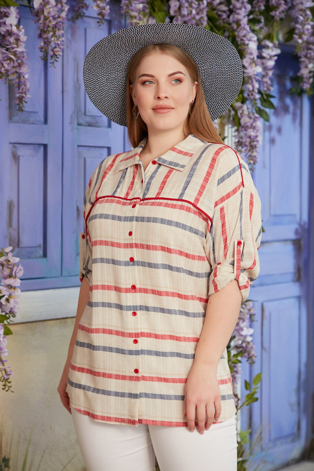 Rmg Çizgili Büyük Beden İndigo Gömlek (O4945-İNDİGO)