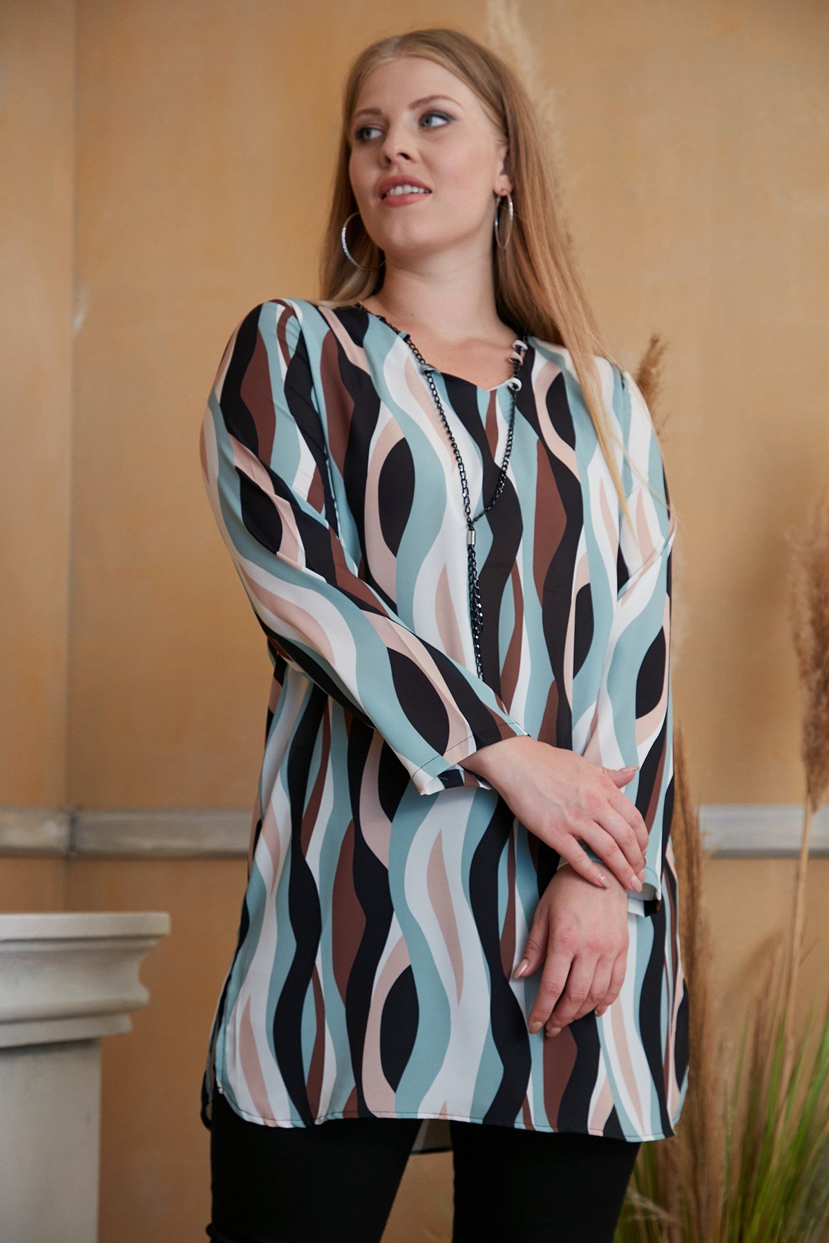 RMG Desen Detaylı Büyük Beden Çagla Yeşili Tunik (O4305-ÇAGLA YEŞİLİ)