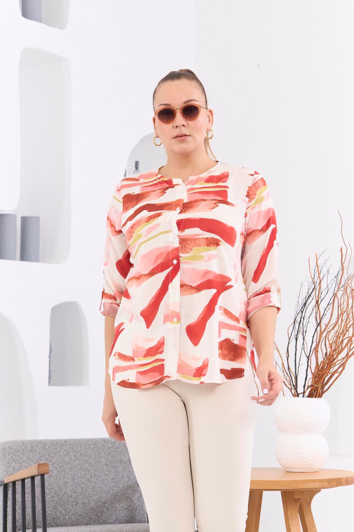 Rmg Desenli Büyük Beden Düğmeli Kiremit Bluz