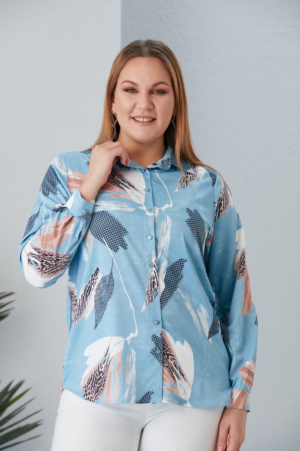 Rmg Desenli Büyük Beden İndigo Gömlek (O4987-İNDİGO)