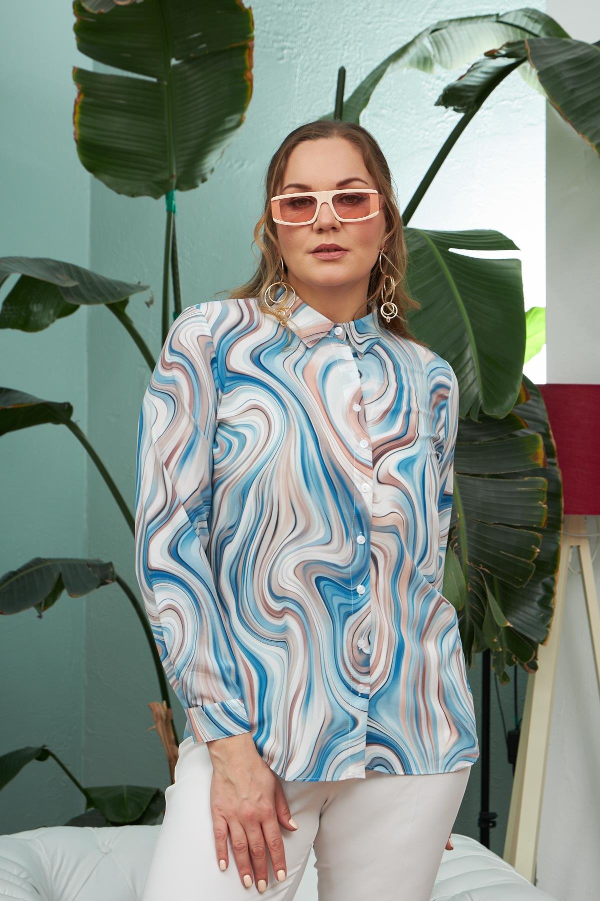 Rmg Ebru Desenli Büyük Beden Uzun Kol İndigo Gömlek