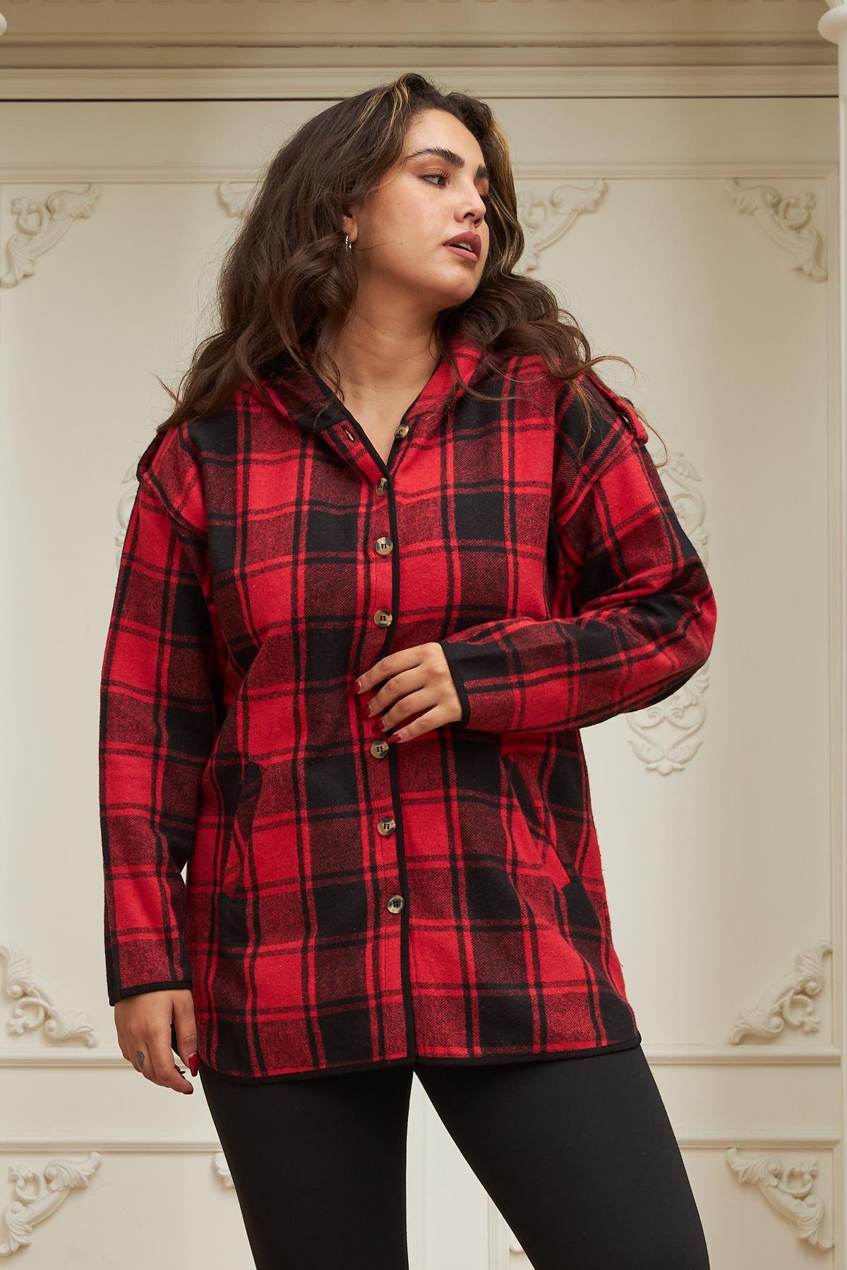 Ekose Büyük Beden Cepli Kırmızı Gömlek (9817-KIRMIZI)