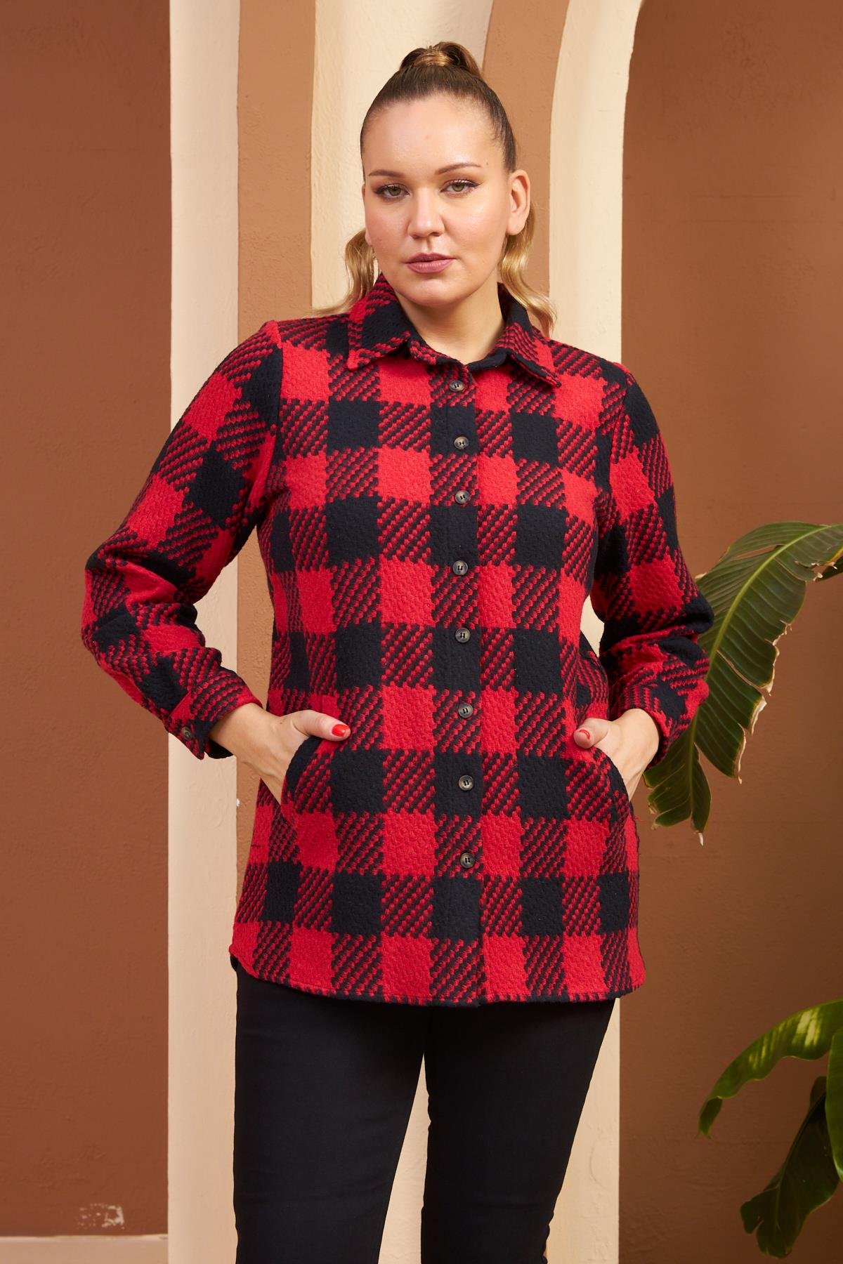 Ekoseli Büyük Beden Kırmızı Oduncu Gömlek (O6205-KIRMIZI)