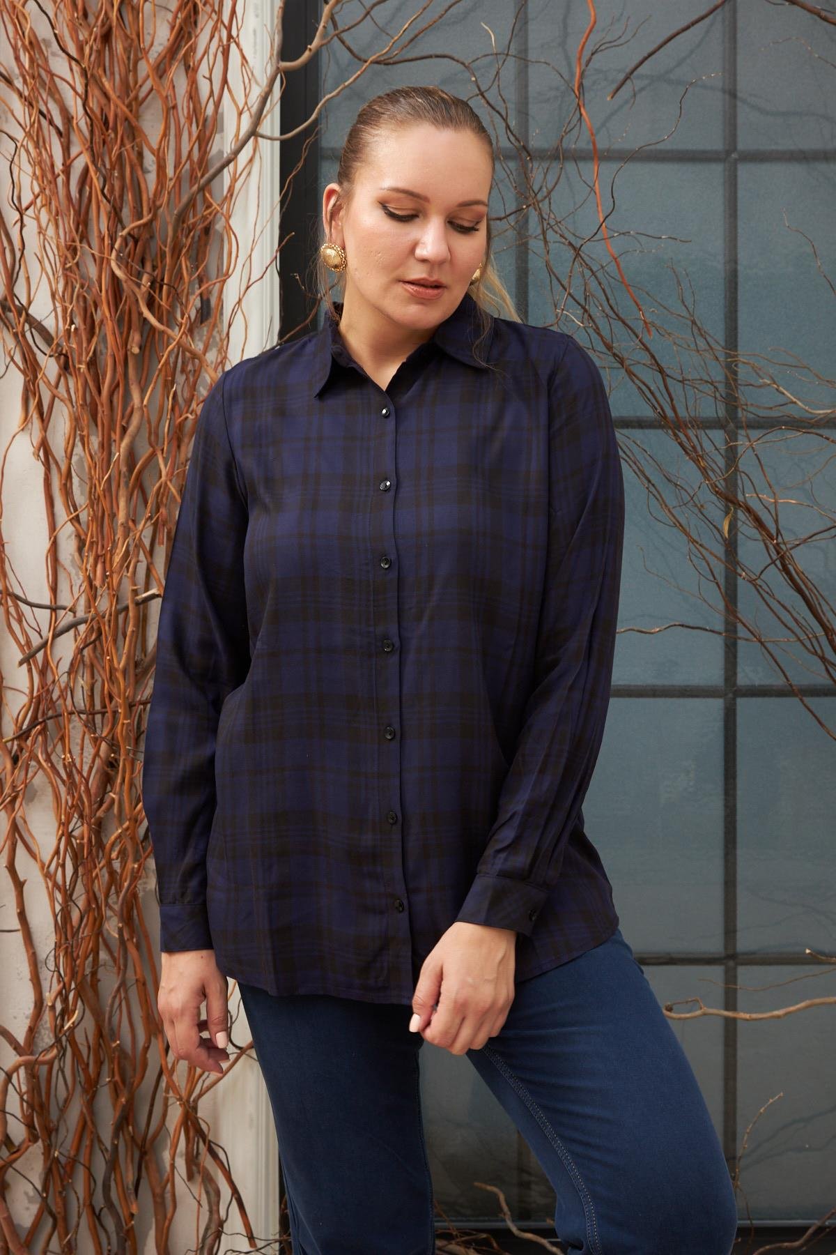 Ekoseli Büyük Beden Lacivert Gömlek (O6204-LACİVERT)