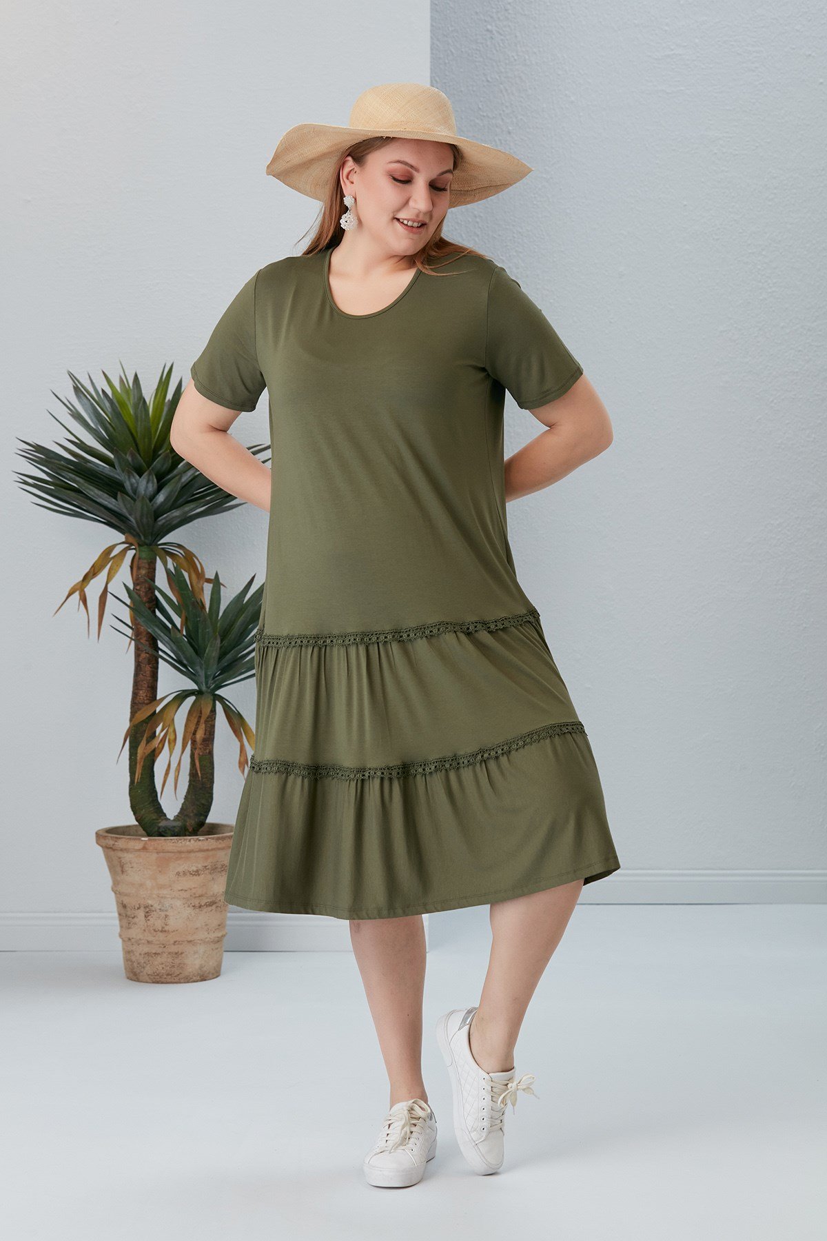 Rmg Eteği Dantel Detaylı Büyük Beden Haki Elbise (O4960-HAKİ)