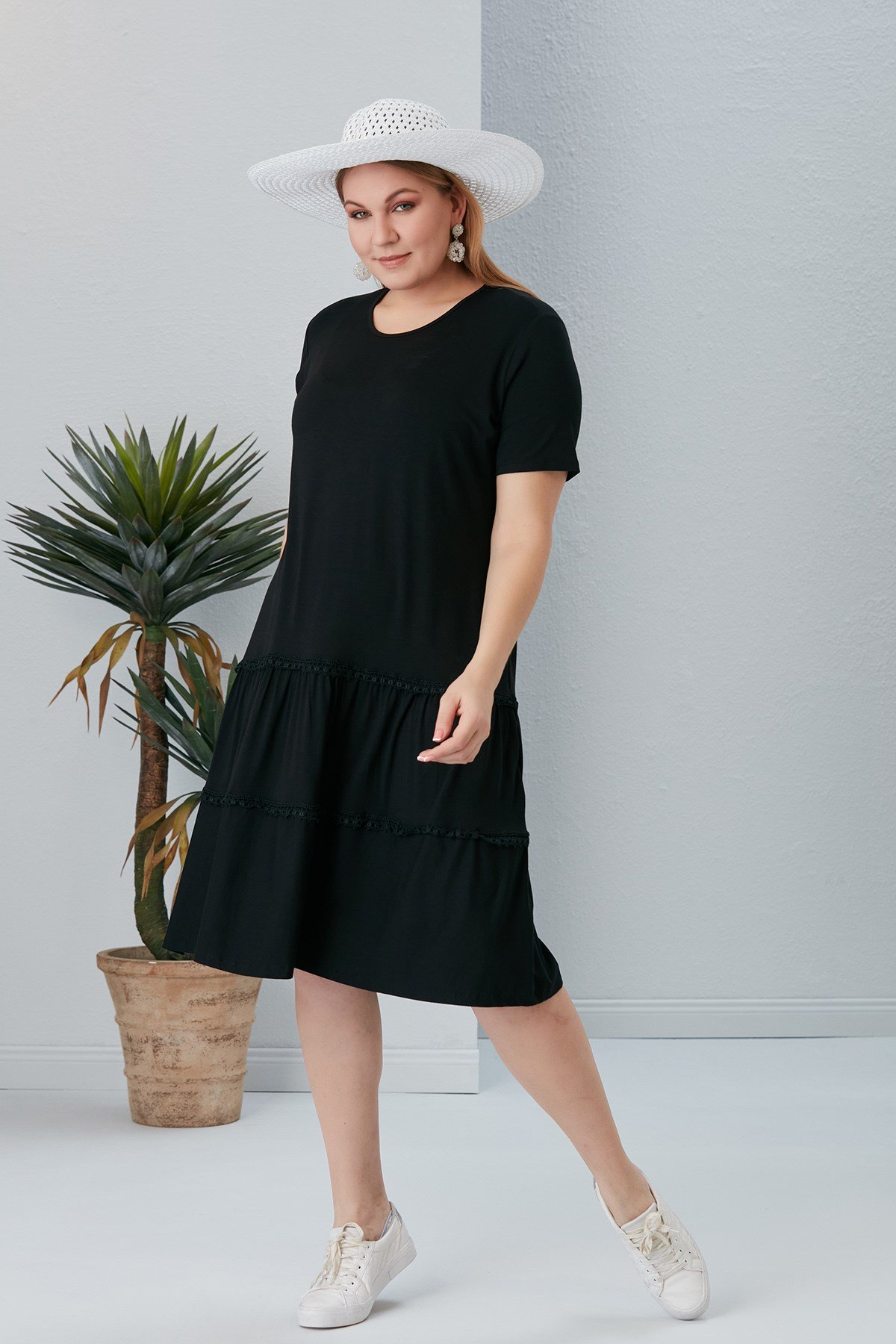Rmg Eteği Dantel Detaylı Büyük Beden Siyah Elbise