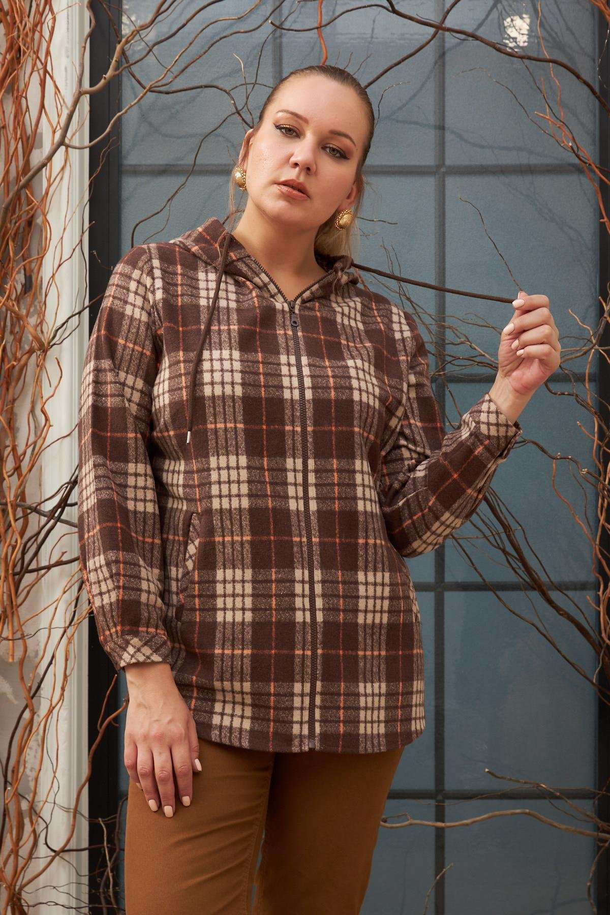 Fermuar Detaylı Büyük Beden Kahve Ekose Gömlek (9758-KAHVE)