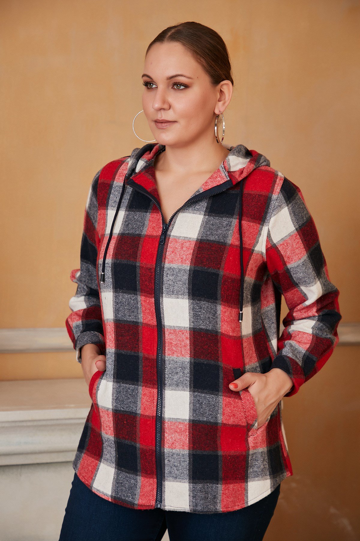 Rmg Fermuarlı Ekose Kırmızı Ceket (9743-KIRMIZI)