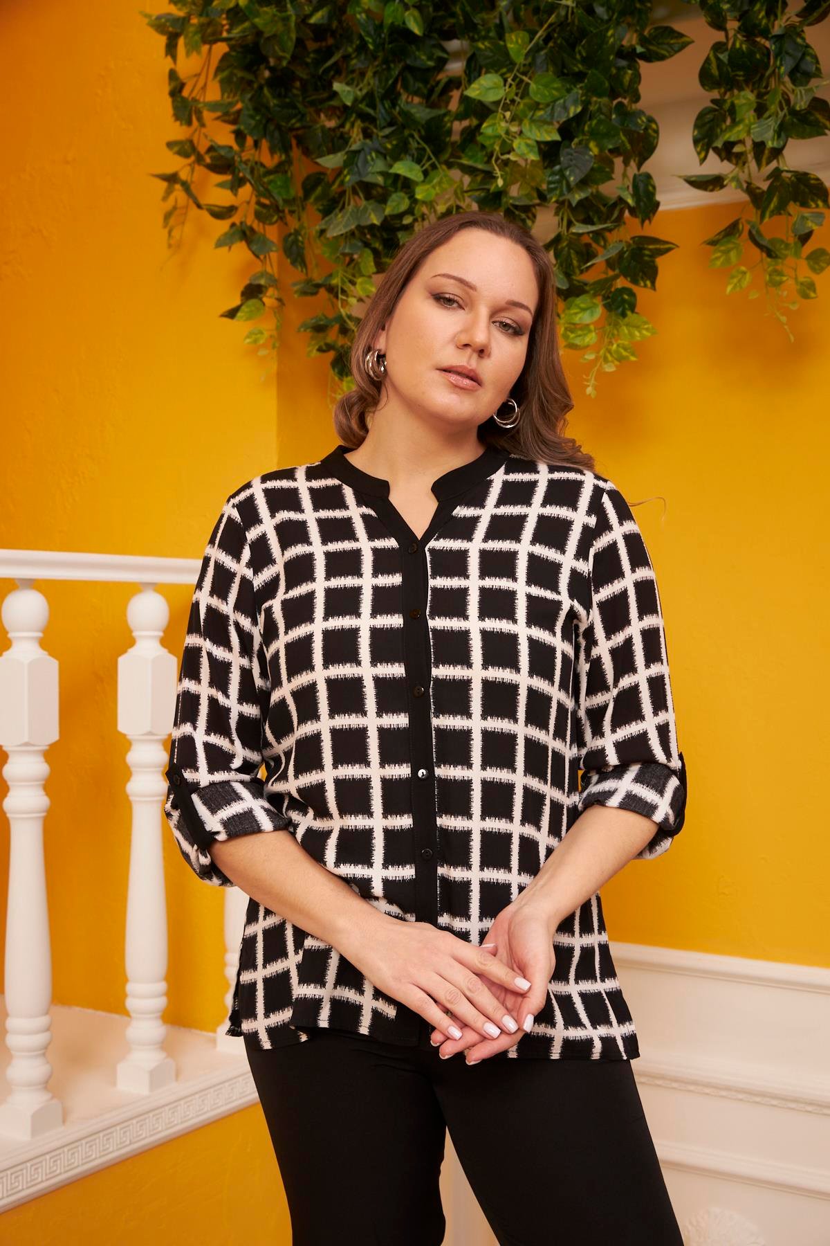 Hakim Yaka Büyük Beden Siyah Kareli Gömlek (O6295-SİYAH)