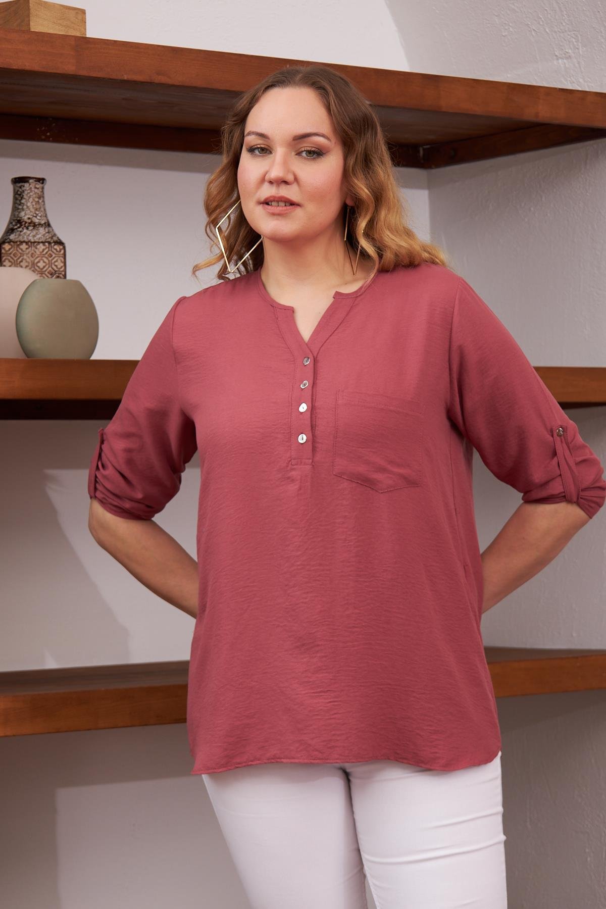 Rmg Hakim Yaka Gül Kurusu Büyük Beden Bluz (O4609-GÜLKURUSU)