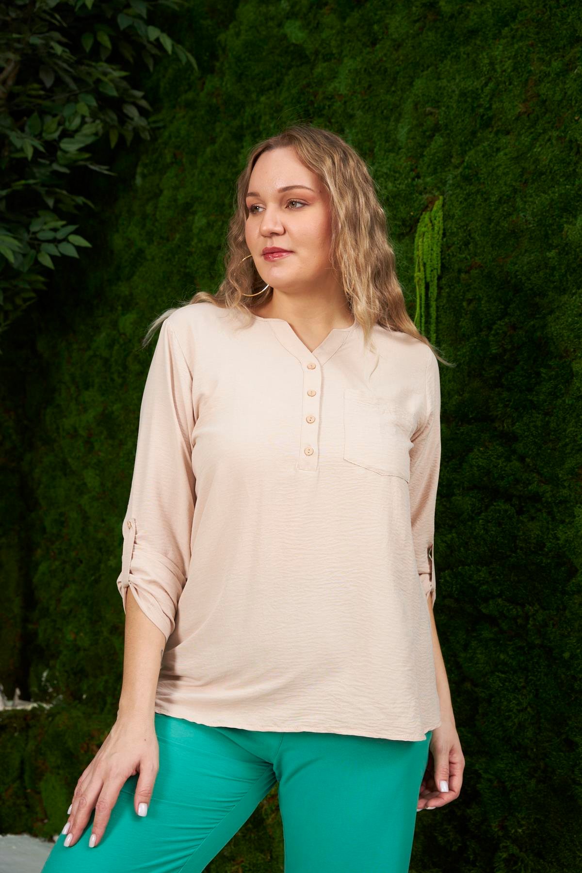 Hakim Yaka Vizon Büyük Beden Bluz (O4609-VİZON)
