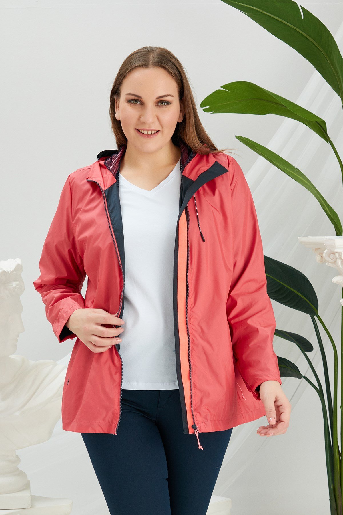 Rmg İçi Fileli Büyük Beden Mercan Yağmurluk Mont