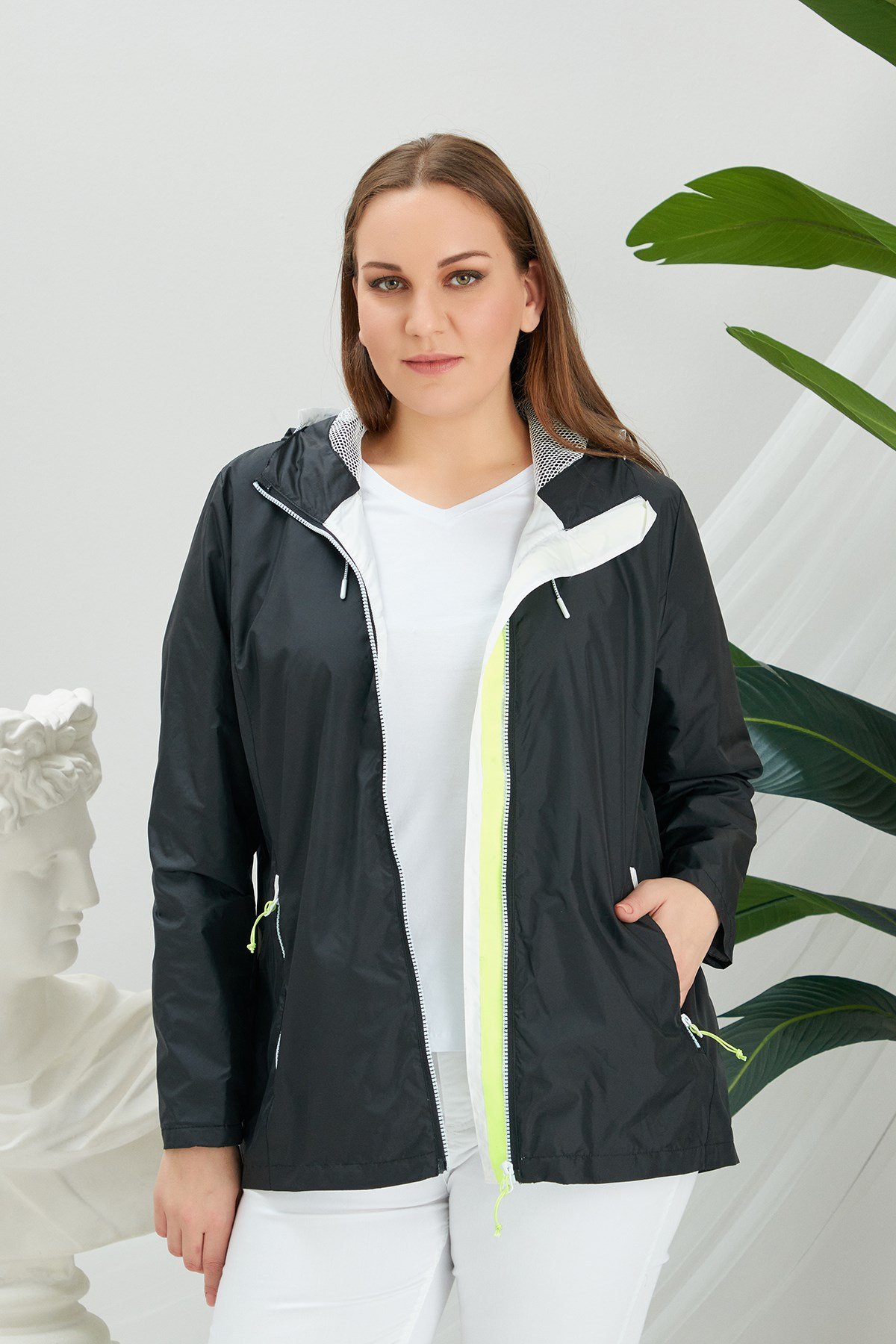 Rmg İçi Fileli Büyük Beden Siyah Yağmurluk Mont