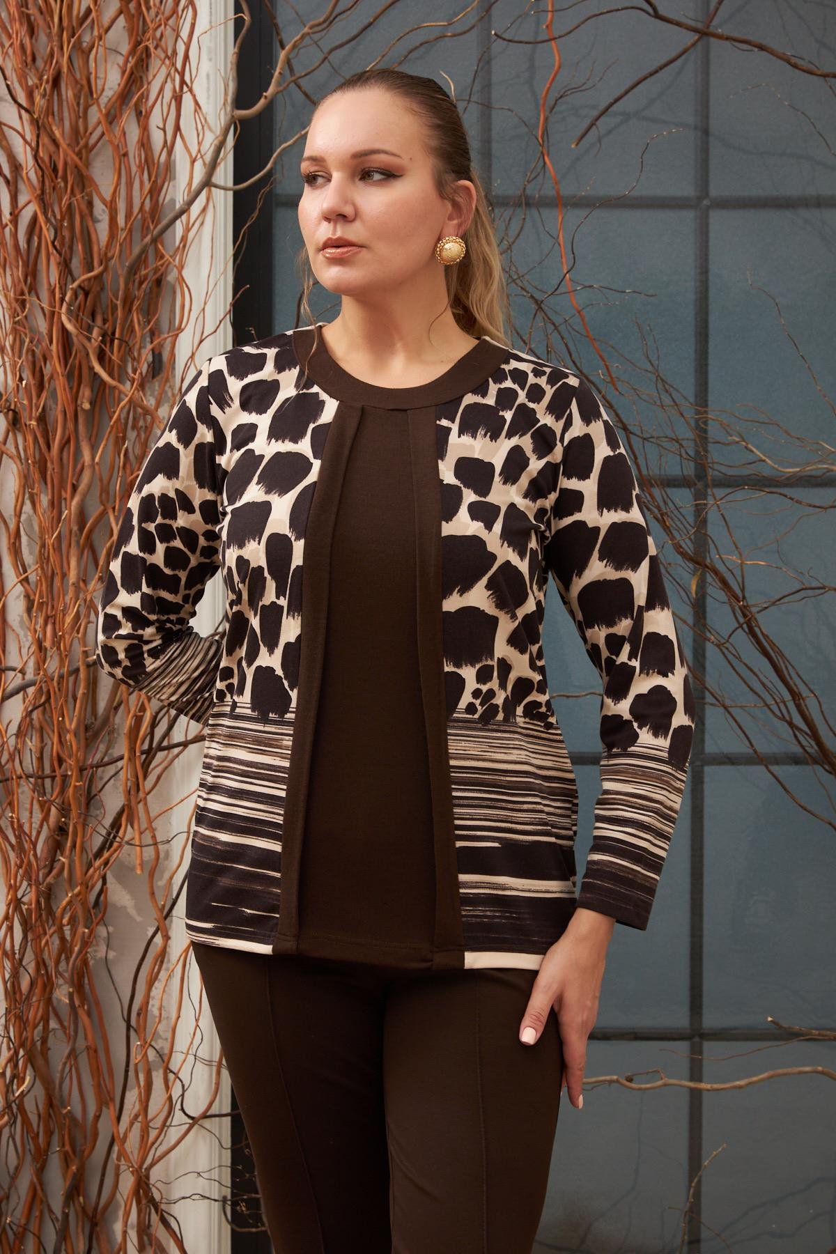 İkili Görünümlü Büyük Beden Kahve Bluz (O6194-KAHVE)