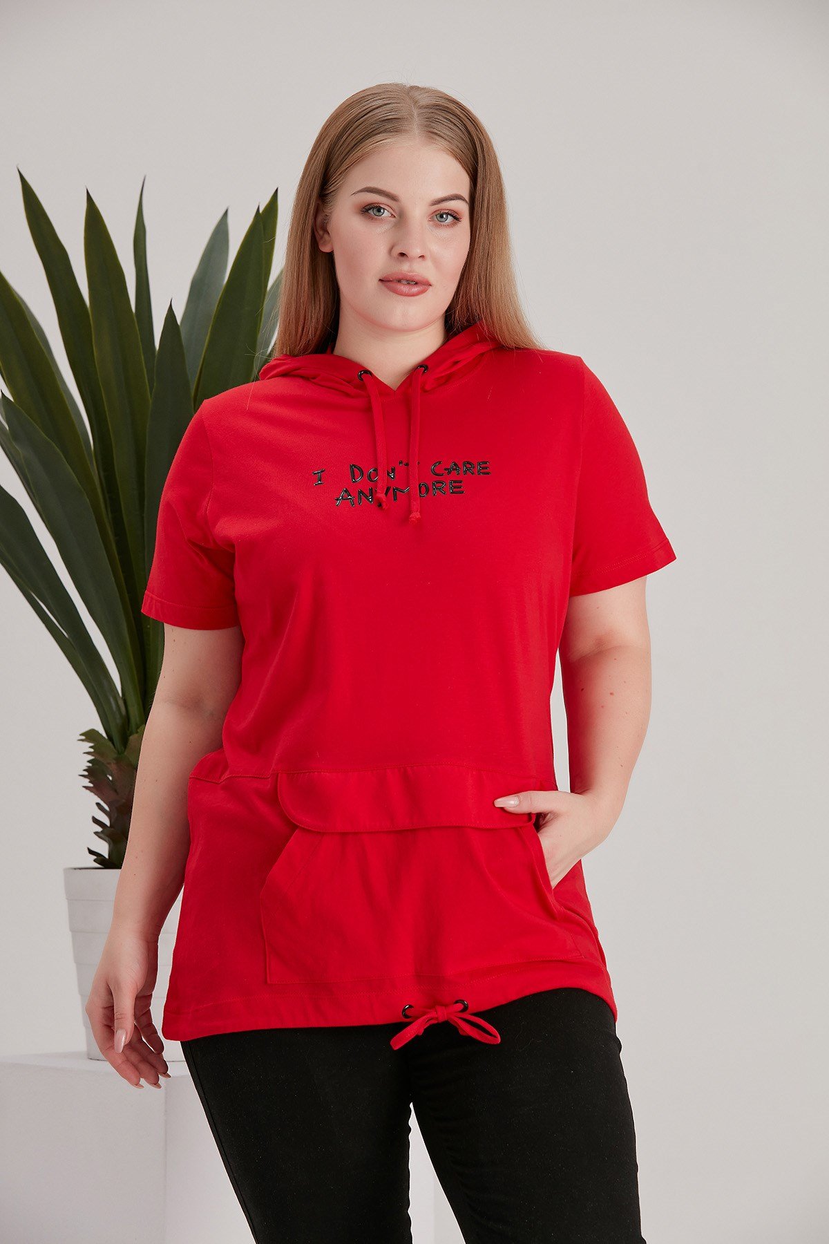Rmg Kanguru Cepli Kapşonlu Büyük Beden Kırmızı Tişört