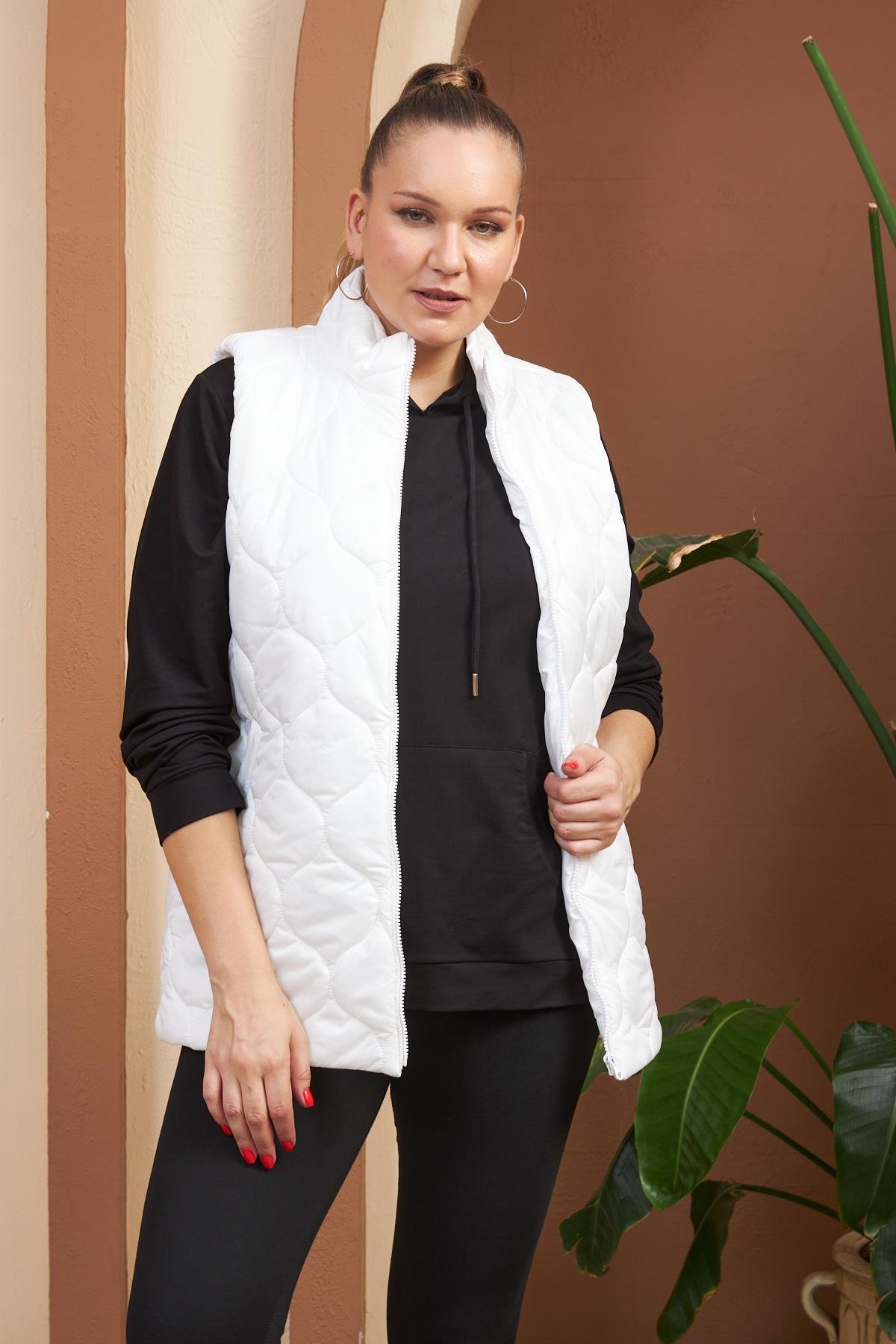 Kapitone Büyük Beden Beyaz Yelek (9787-BEYAZ)