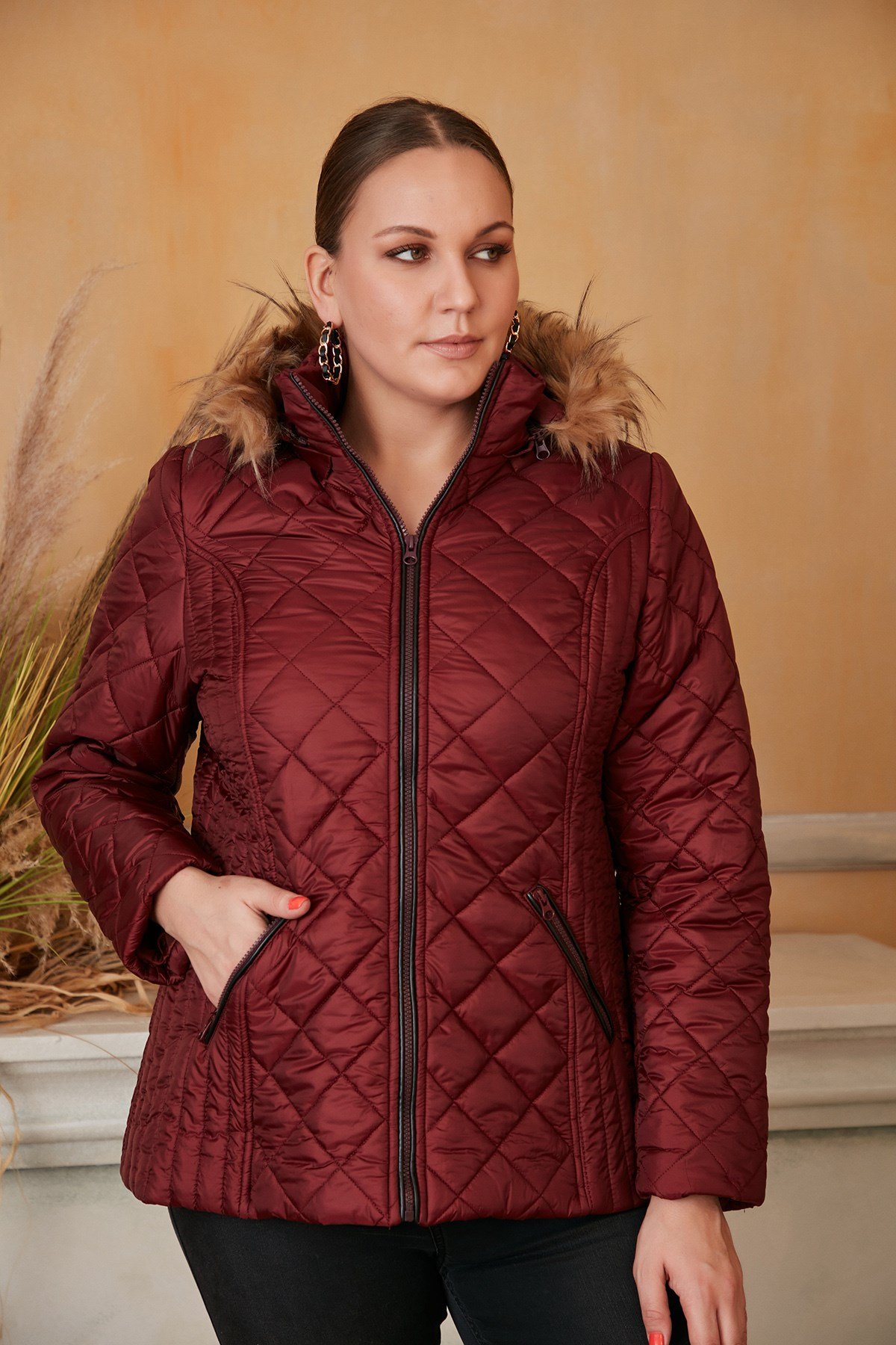 RMG Kapşonlu Büyük Beden Kapitone Mont Kaban Bordo (9957-BRD)