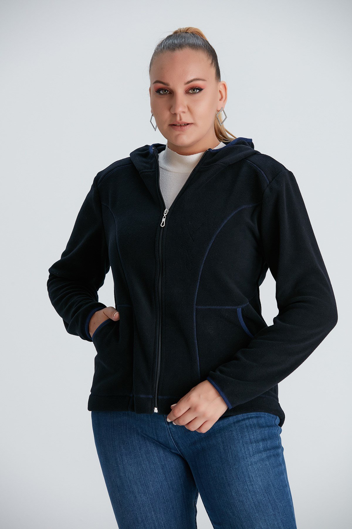 Rmg Kapşonlu Büyük Beden Lacivert Polar Sweatshirt