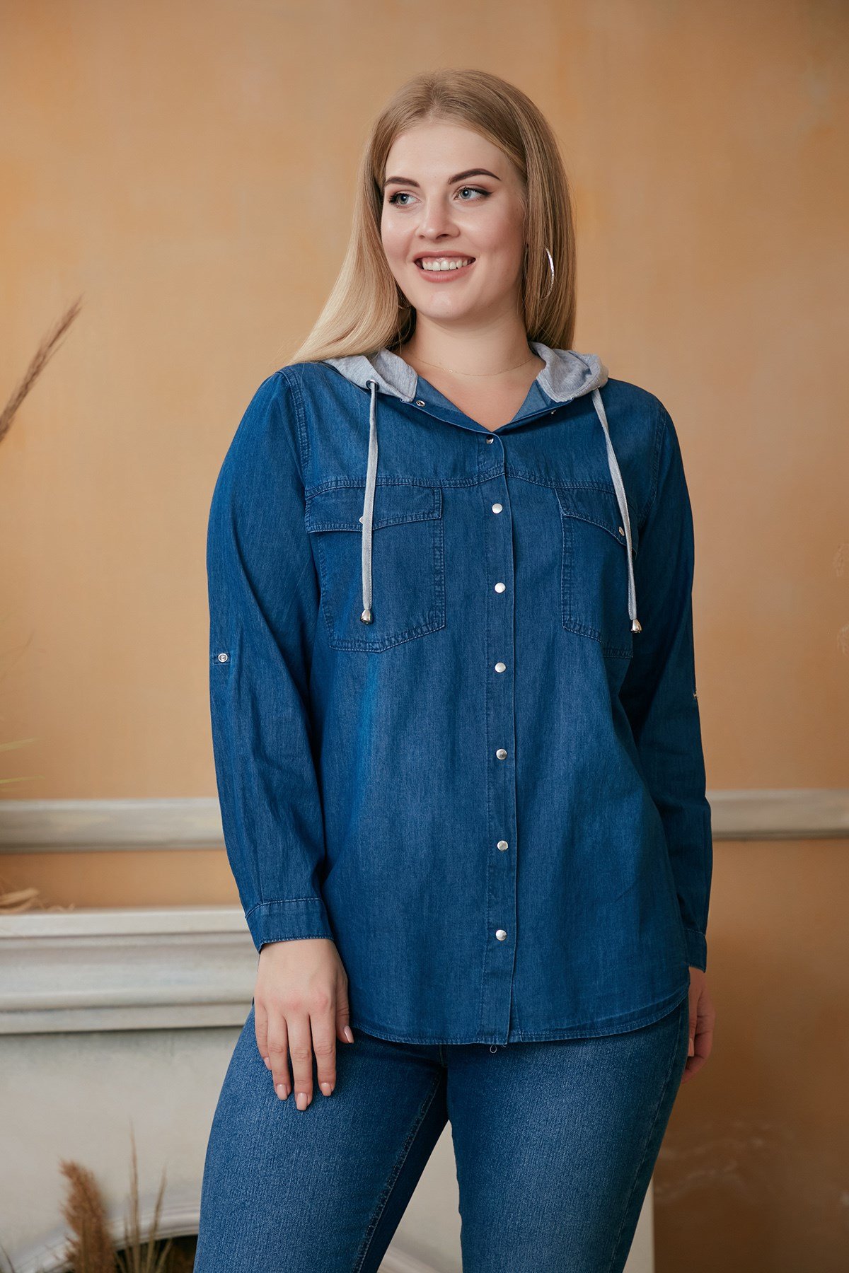 Rmg Kapşonlu Büyük Beden Mavi Kot Gömlek (O4380-KİM. MAVİ)