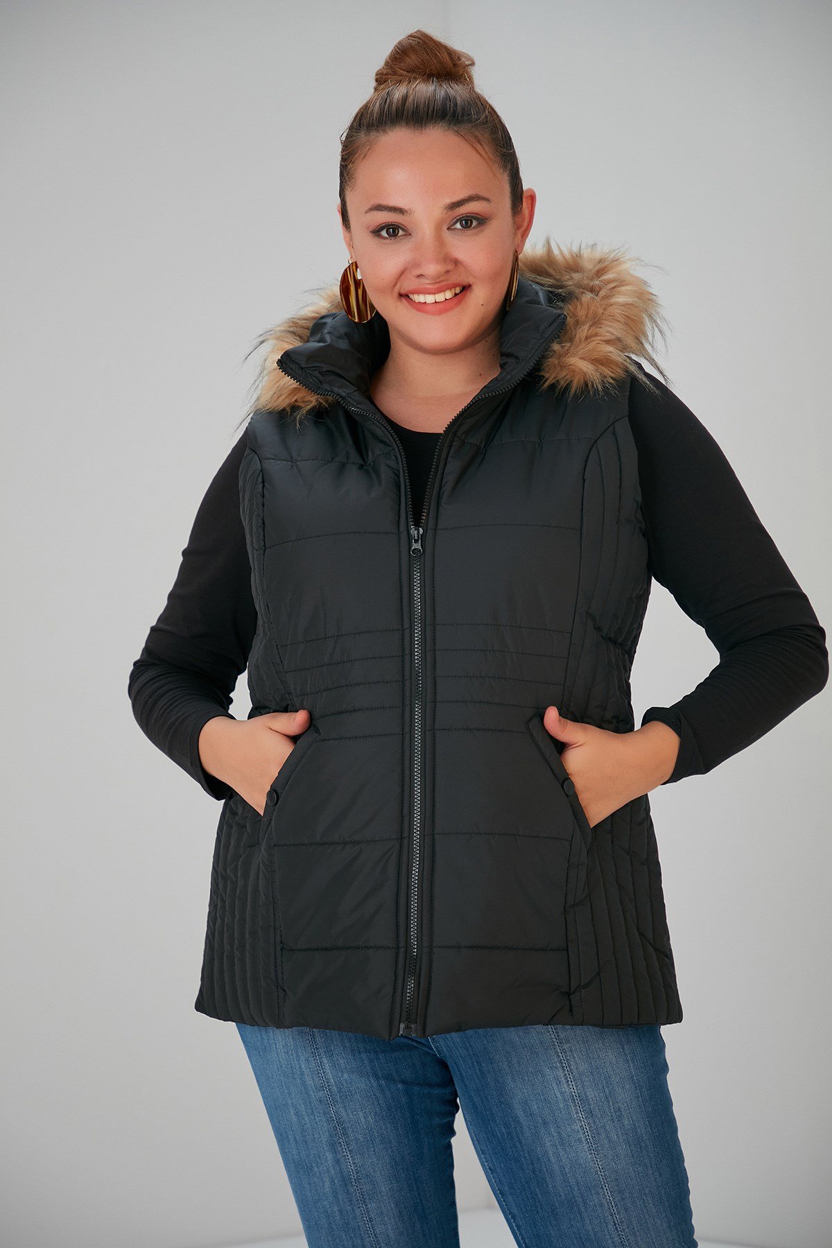 Rmg Kapşonlu Büyük Beden Siyah Yelek