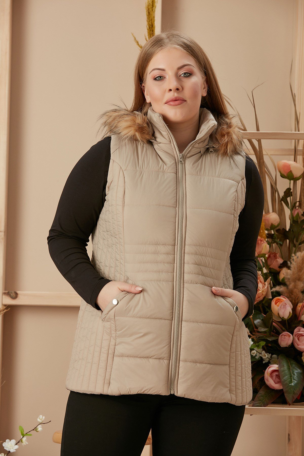 Rmg Kapşonlu Büyük Beden Vizon Yelek