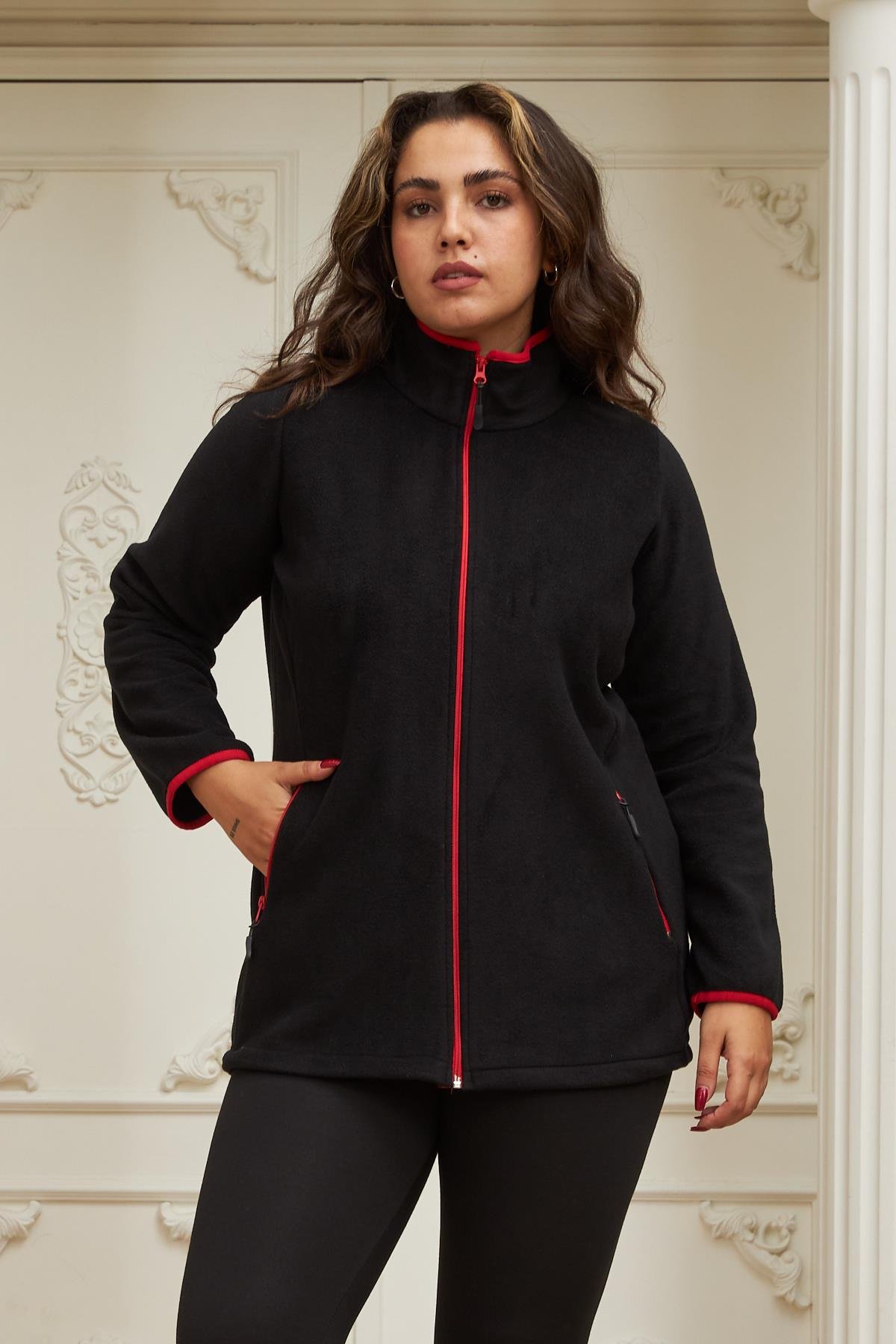 Kol Biye Detaylı Büyük Beden Siyah Polar (9798-SİYAH)