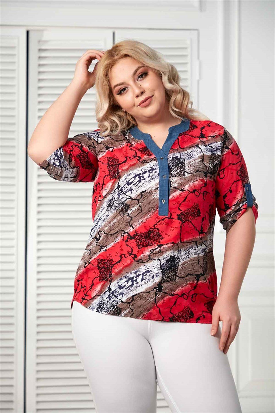 RMG Kol Detaylı Büyük Beden Viskon Mercan Bluz (O4134-MERCAN)