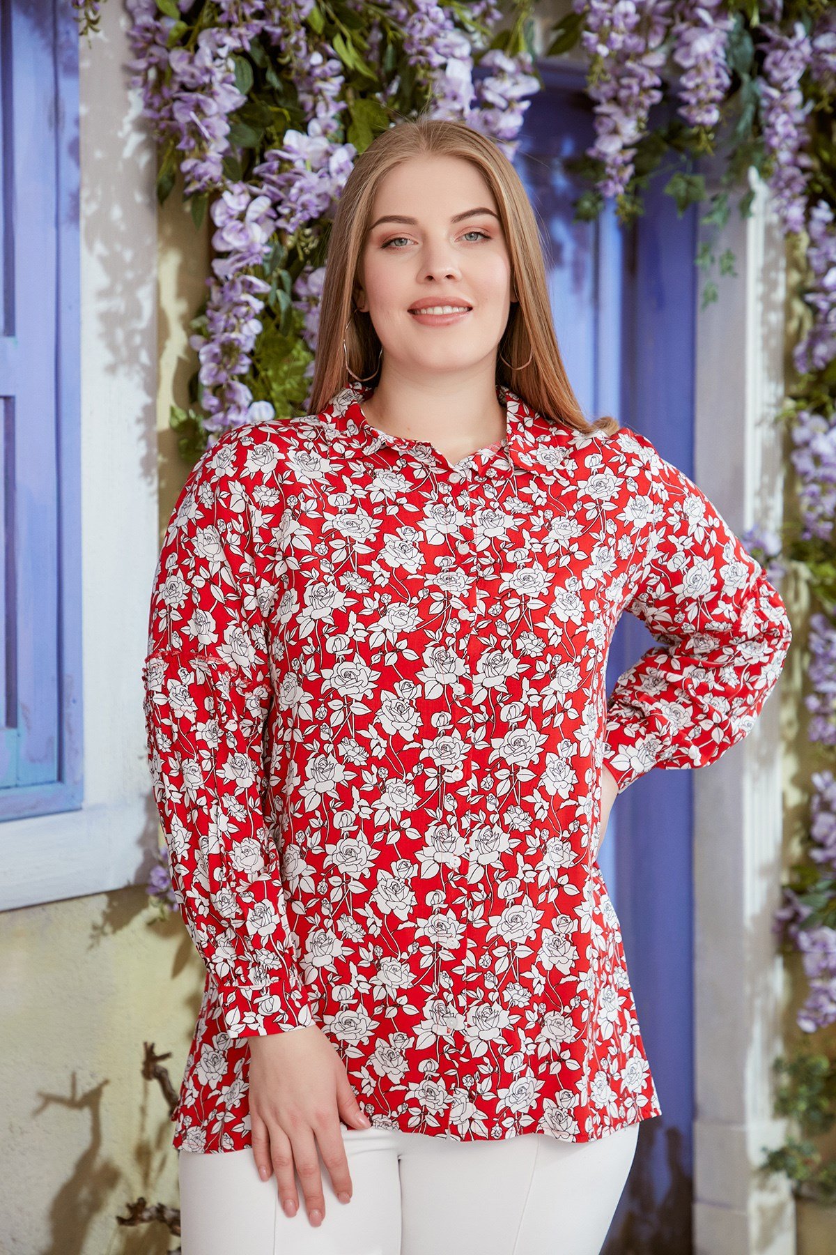 Rmg Kol Detaylı Desenli Büyük Beden Kırmızı Gömlek (O4782-KIRMIZI)