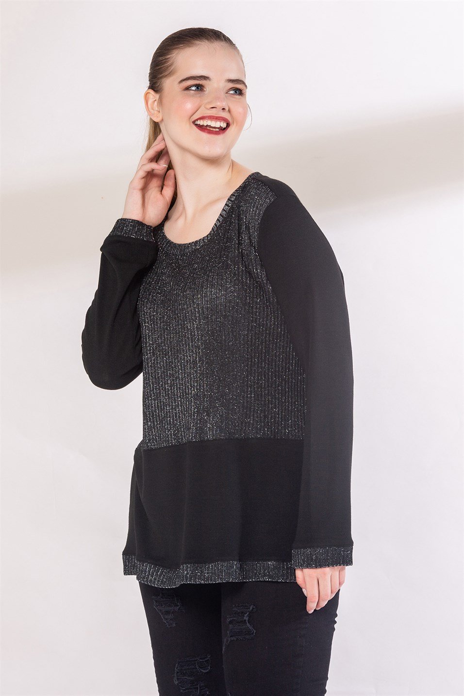 Rmg Kol Detaylı Simli Büyük Beden Triko Bluz