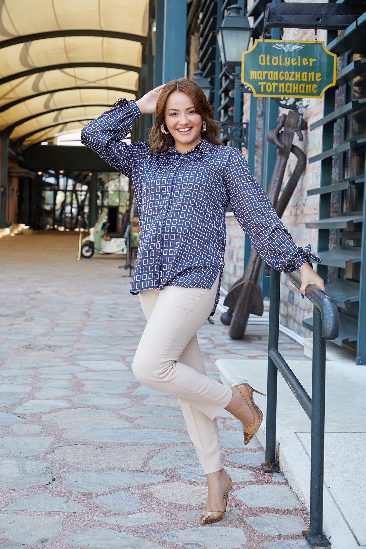 Rmg Kol Fiyonk Detaylı Büyük Beden Lacivert Gömlek (O5037-LACİVERT)