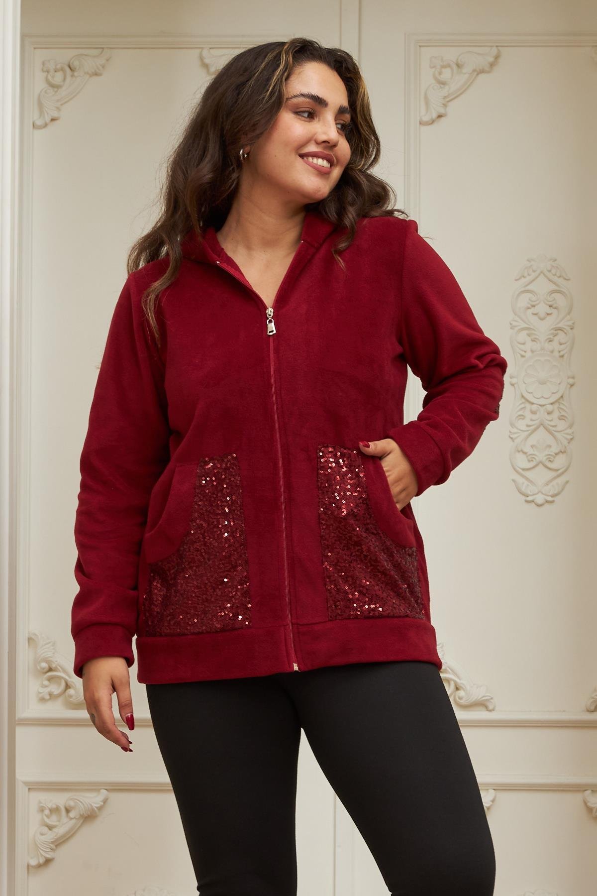 Kol Ve Cep Pul Payet İşlemeli Büyük Beden Bordo Hırka