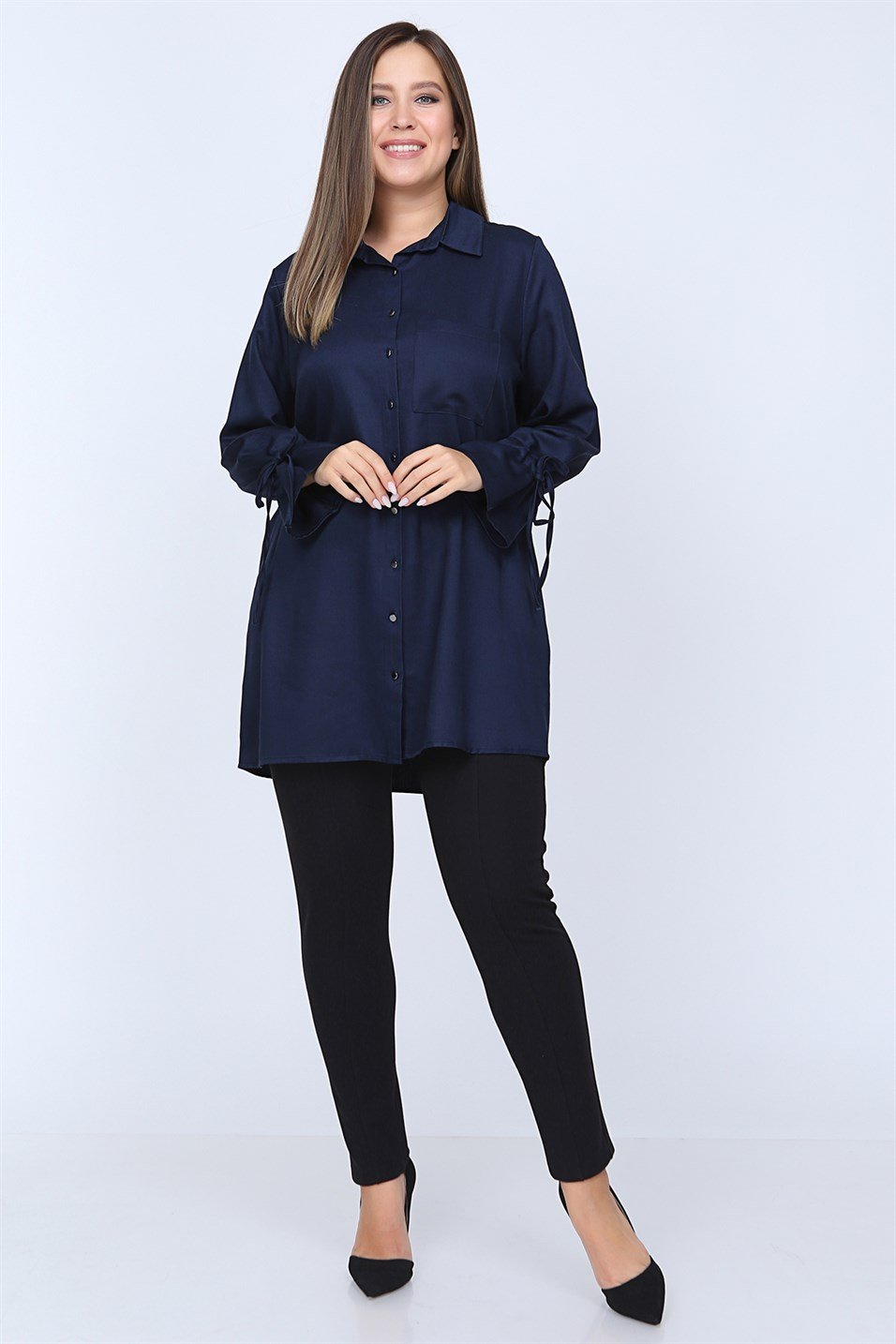 RMG Kolları Bağcık Detaylı Buyuk Beden Gömlek (6911-LACİVERT)