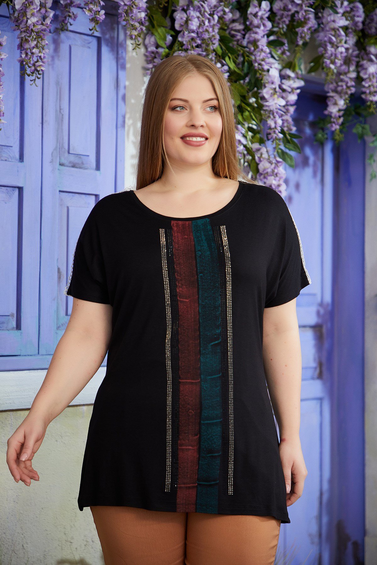 İlkbahar ve yaz aylarında da bluz giymek istiyorum diyorsanız bu ürün tam size! Kolları dantel detaylı bu ürünün kadınsı bir hava yarattığını ifade etmek gerekir. Ayrıca, taş işlemeli olması ile de sizi her durumda şık gösterecektir. Siyah rengin üzerinde bulunan bu detaylar kendisini çok iyi bir şekilde göstermektedir. 44 bedenden başlayarak 50 bedene kadar seçenekleri bulunmaktadır.