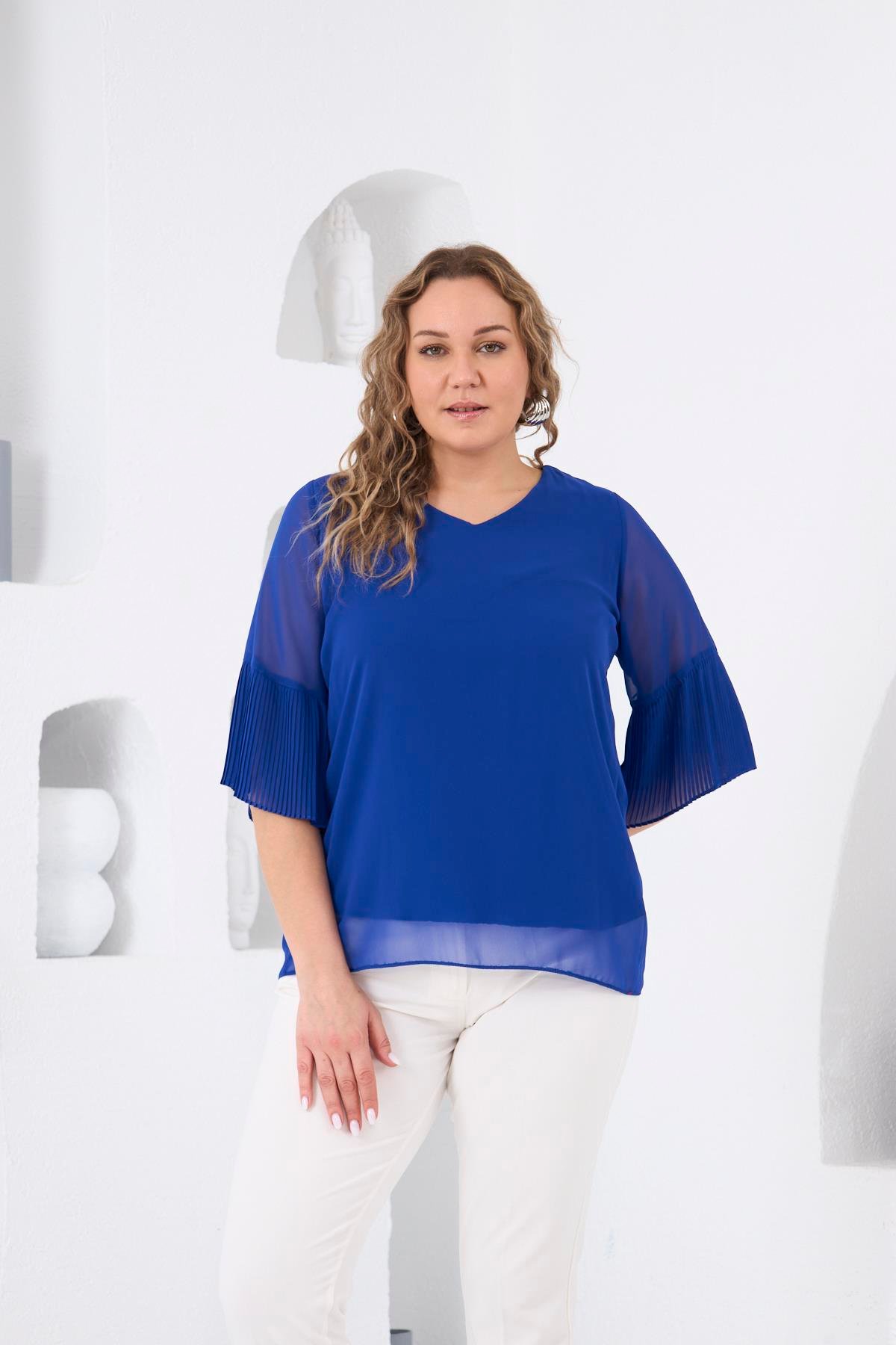 Kolları Piliseli Büyük Beden Saks Bluz (O6164-SAKS)