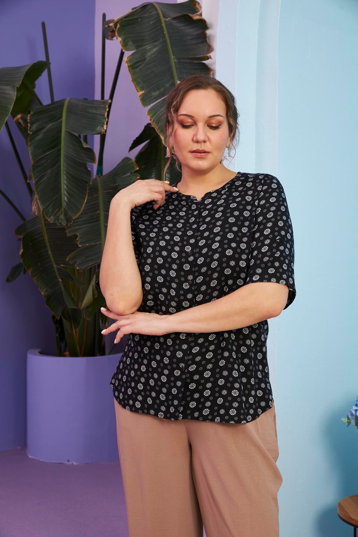Mini Çiçek Desenli Büyük Beden Siyah Gömlek (O6327-SİYAH)