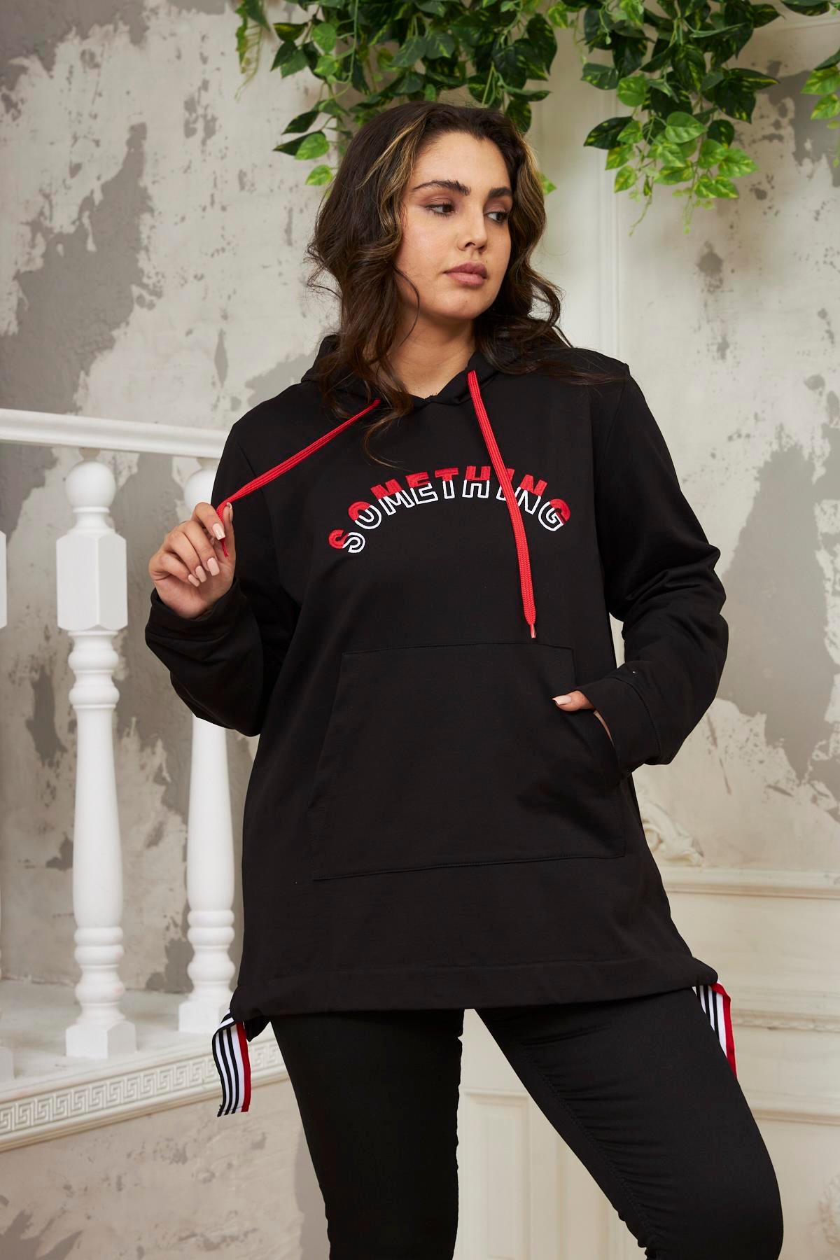 Nakışlı Büyük Beden Siyah Sweatshirt