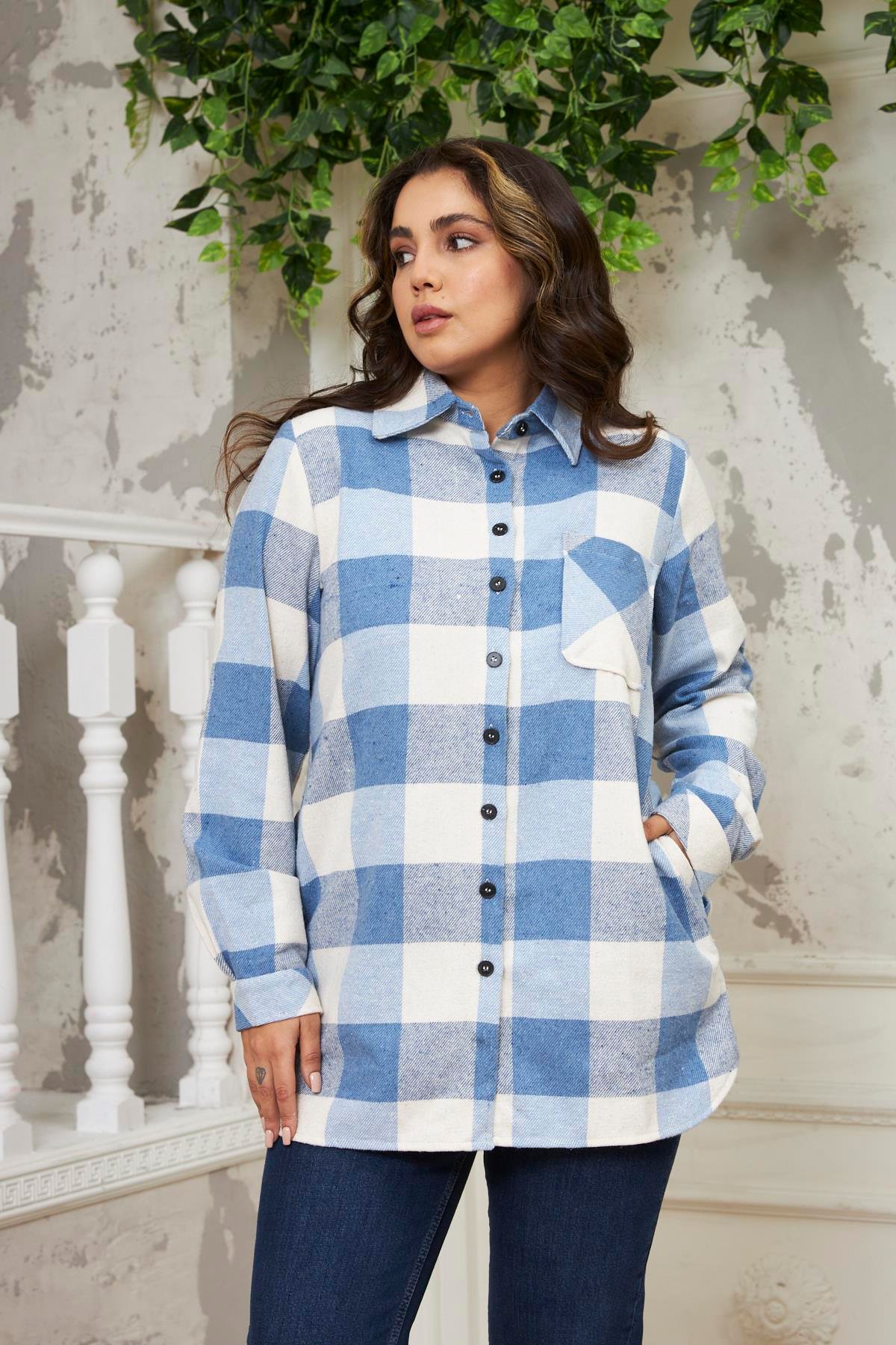 Oduncu Kalın Büyük Beden Cepli İndigo Gömlek (9824-İNDİGO)