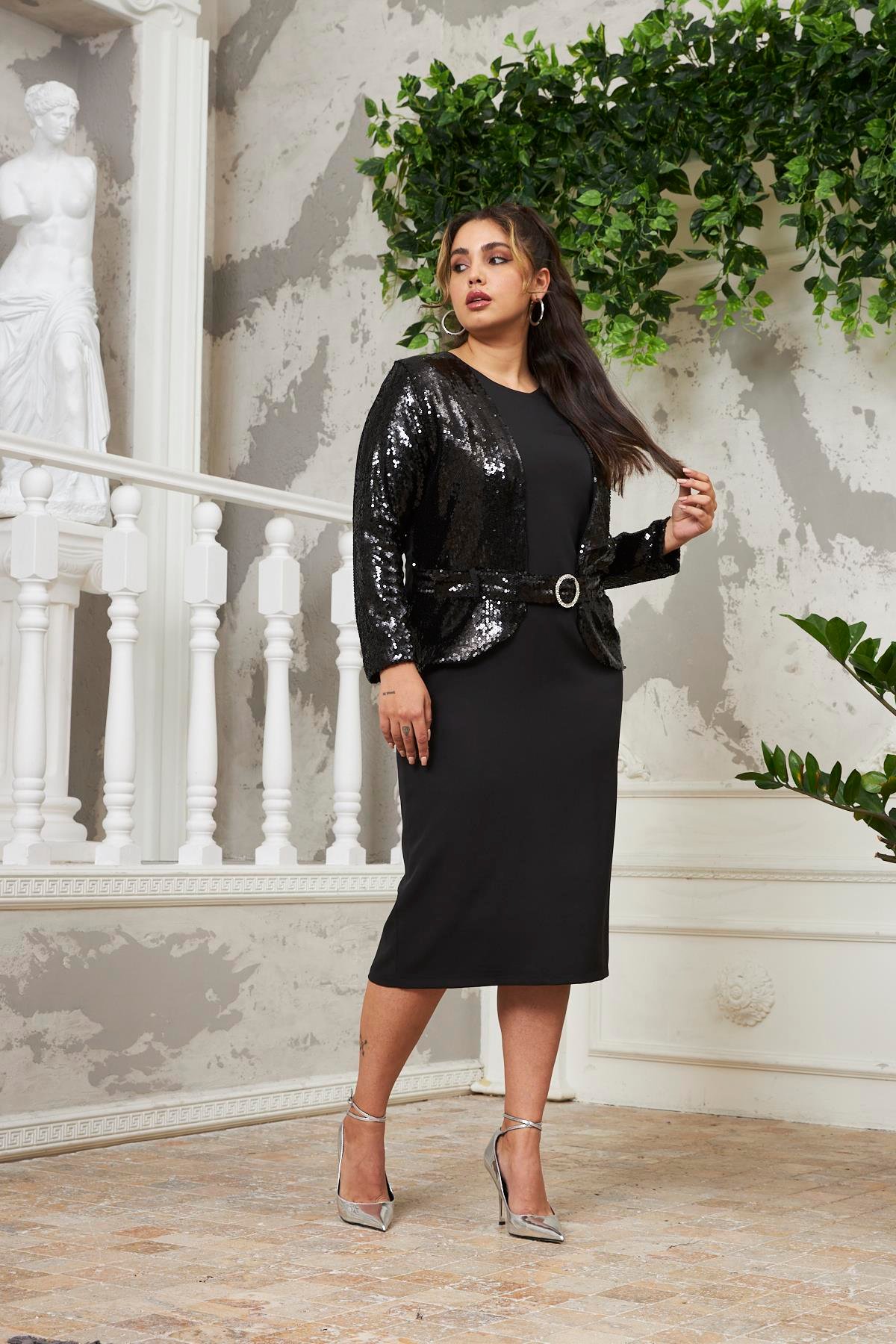Rmg Ön Payet Detaylı Büyük Beden Siyah Elbise