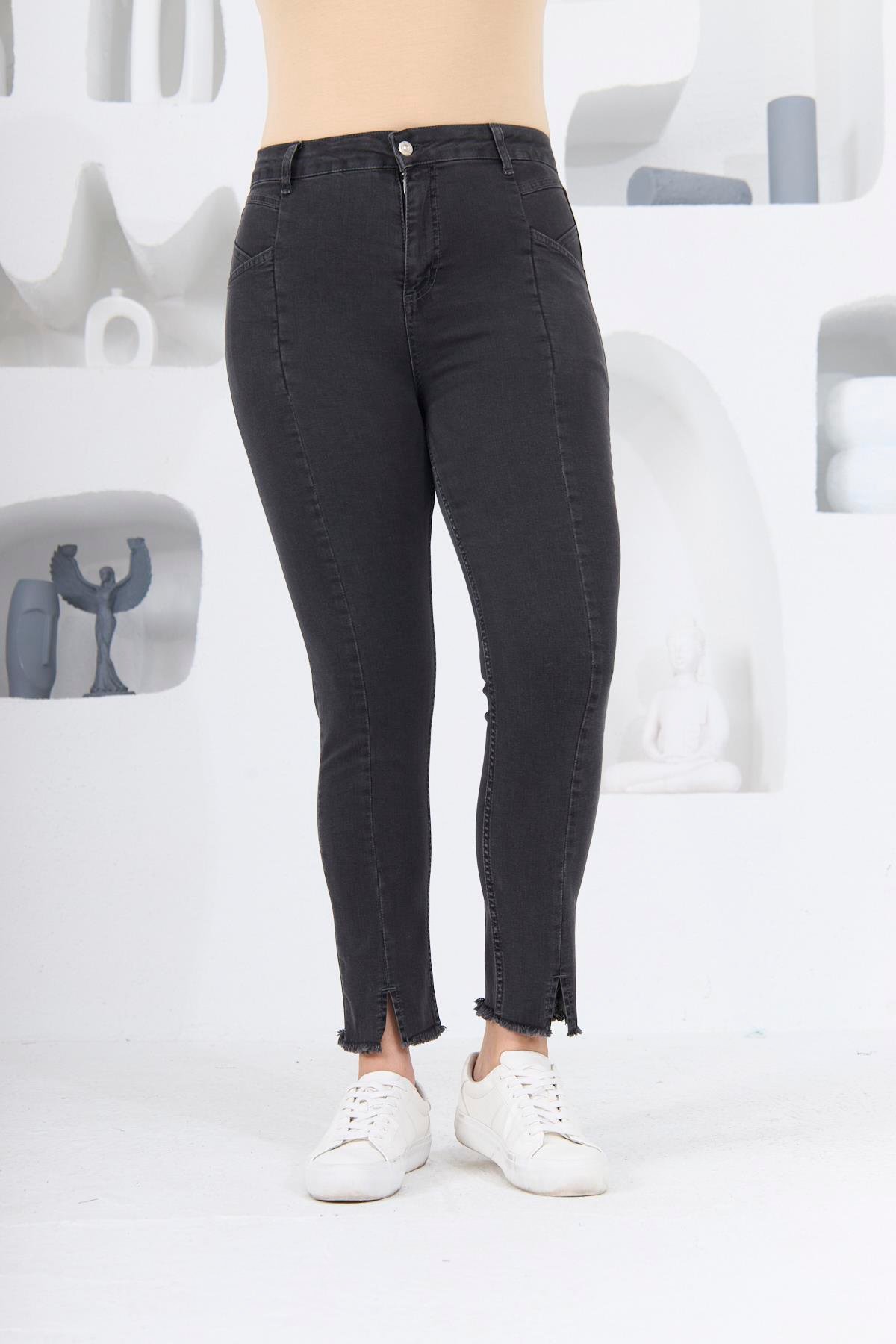 Paça Detaylı Füme Büyük Beden Kot Pantolon (1782-FÜME)
