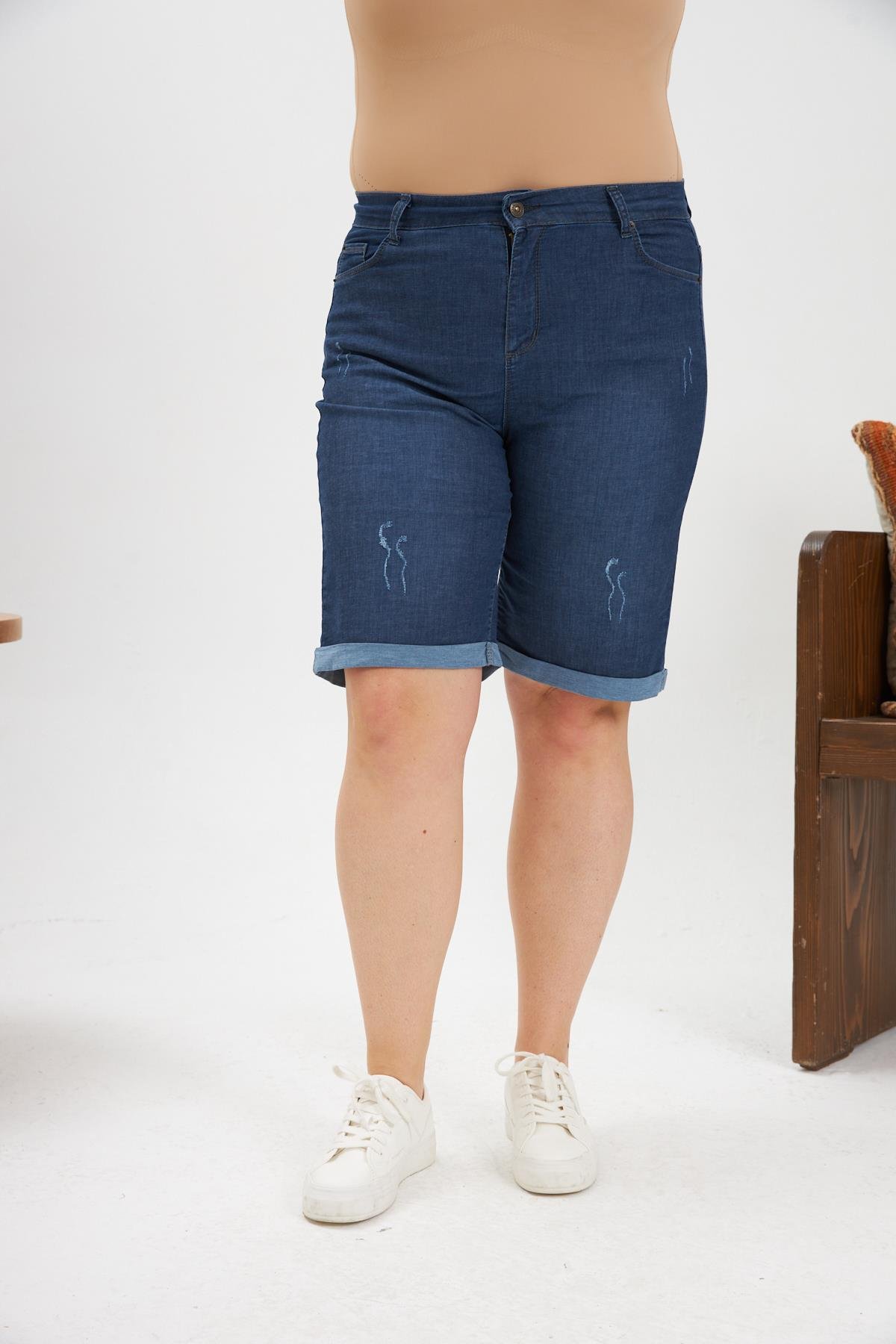 Paça Katlamalı Büyük Beden Kim Mavi Şort (1476-KİM. MAVİ)