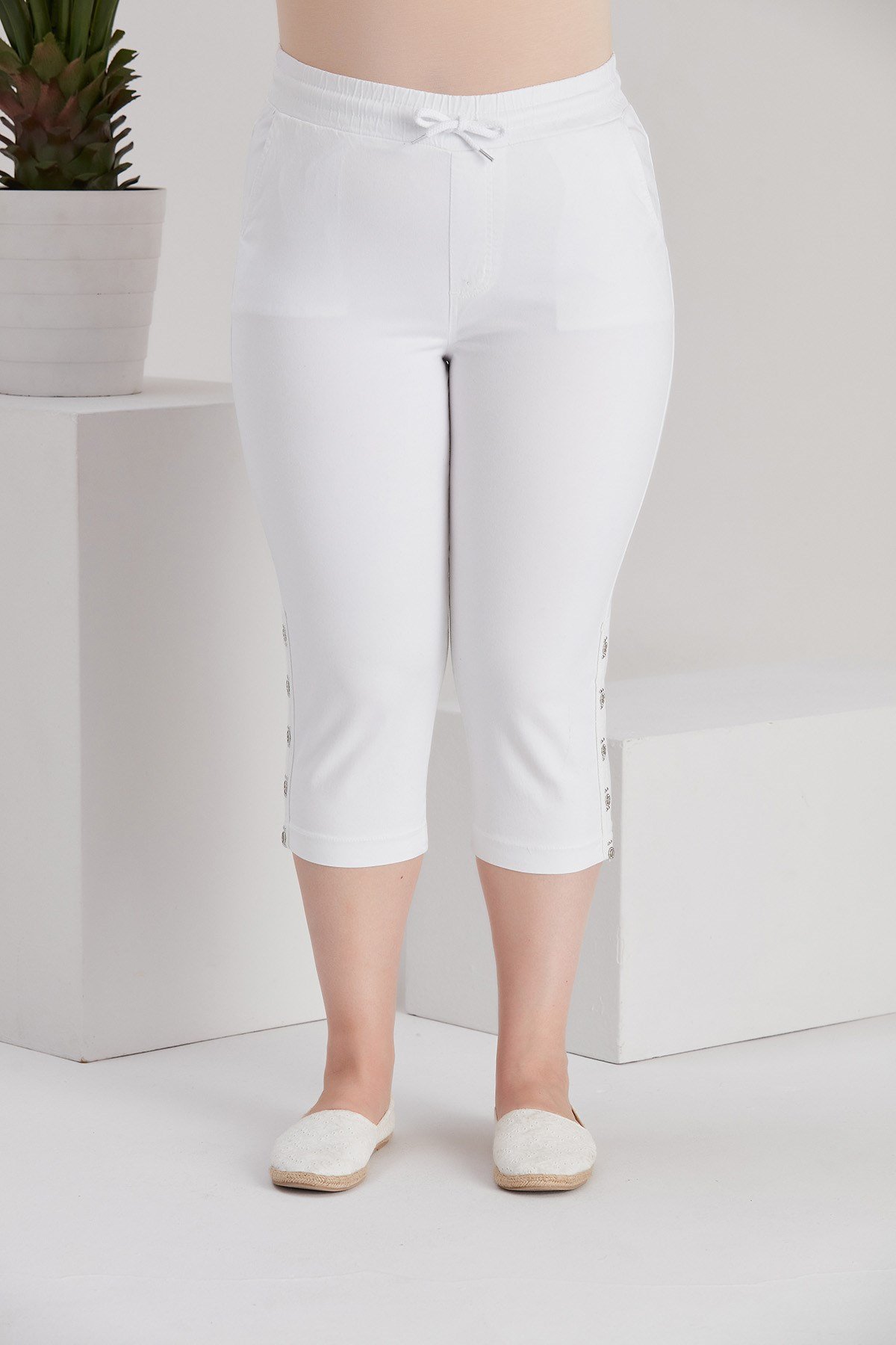 Rmg Paça Taş Detaylı Beli Lastikli Büyük Beden Beyaz Kapri (1606-BEYAZ)
