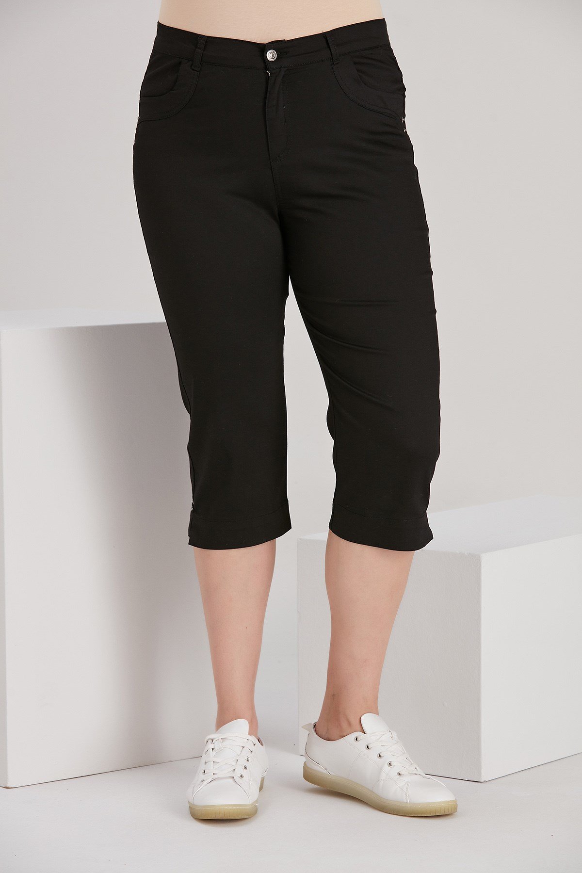 Rmg Paça Yırtmaç Detaylı Büyük Beden Siyah Kapri (1634-SİYAH)