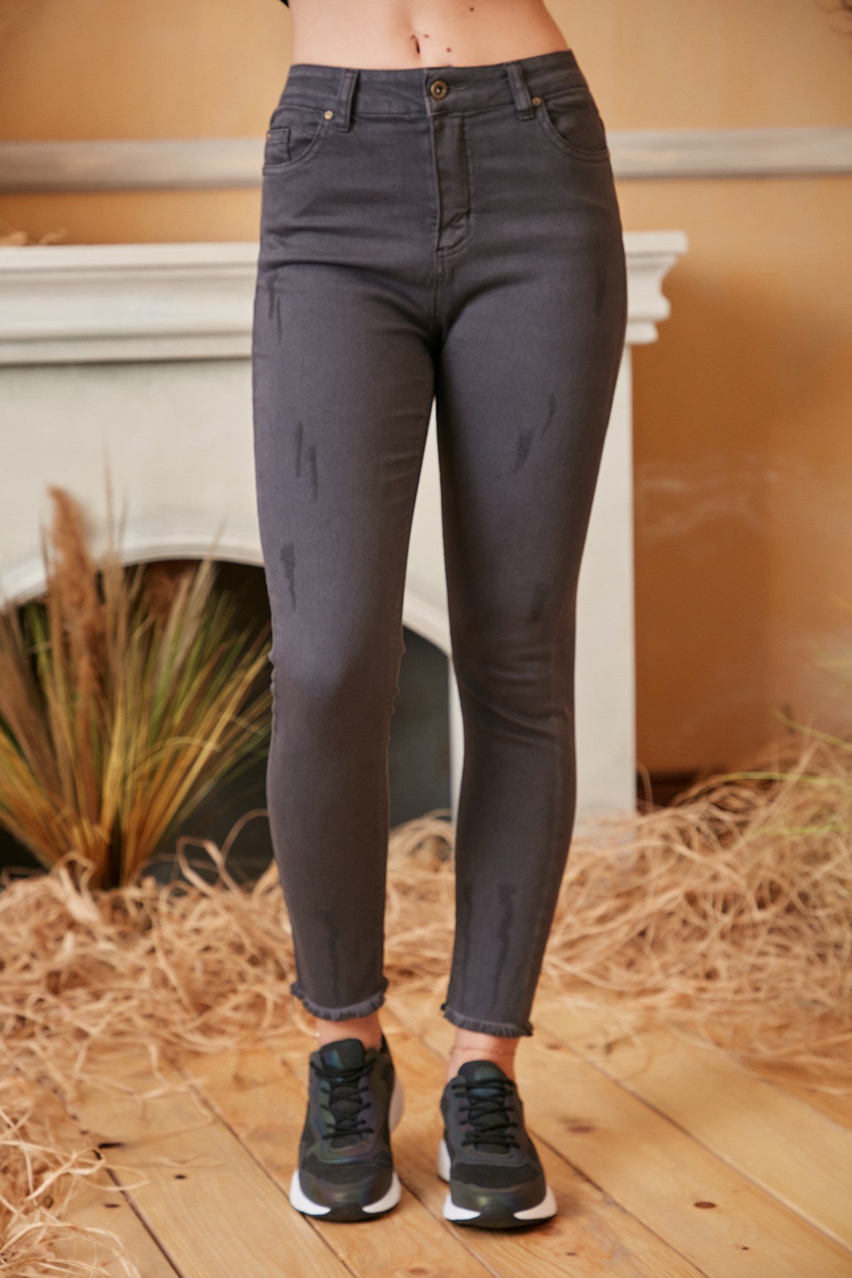 Rmg Paçaları Püskül Ve Yırtık Detaylı Füme Pamuk Pantolon