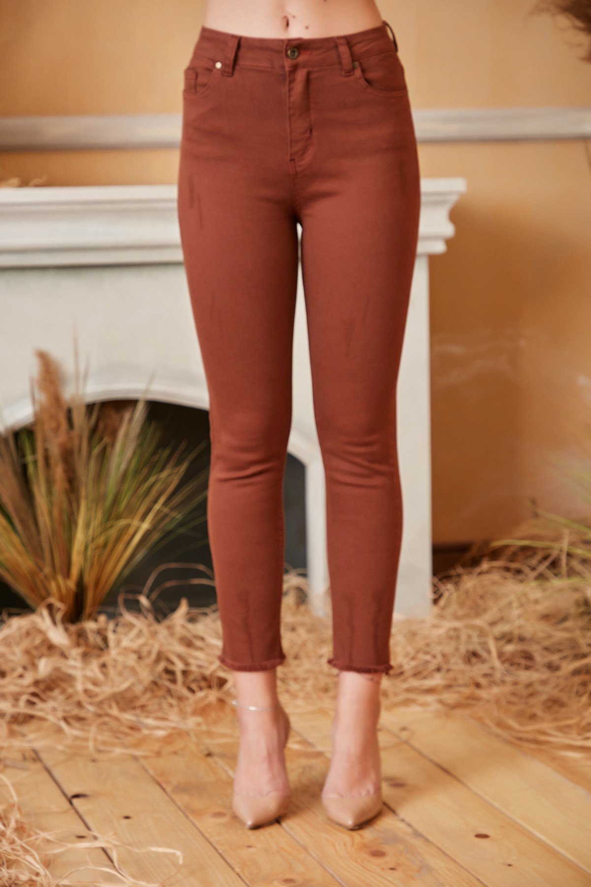 Rmg Paçaları Püskül Ve Yırtık Detaylı Kiremit Pamuk Pantolon (1591K-KİREMİT)