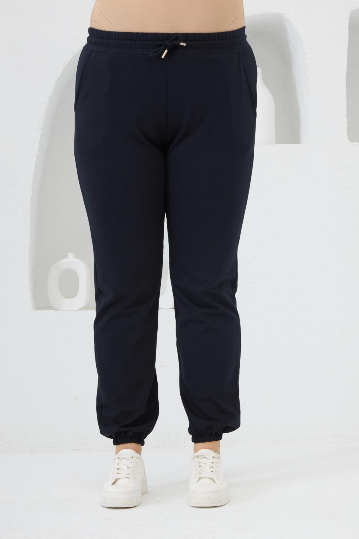 Paçası Lastikli Büyük Beden Lacivert Eşofman (1603-LACİVERT)